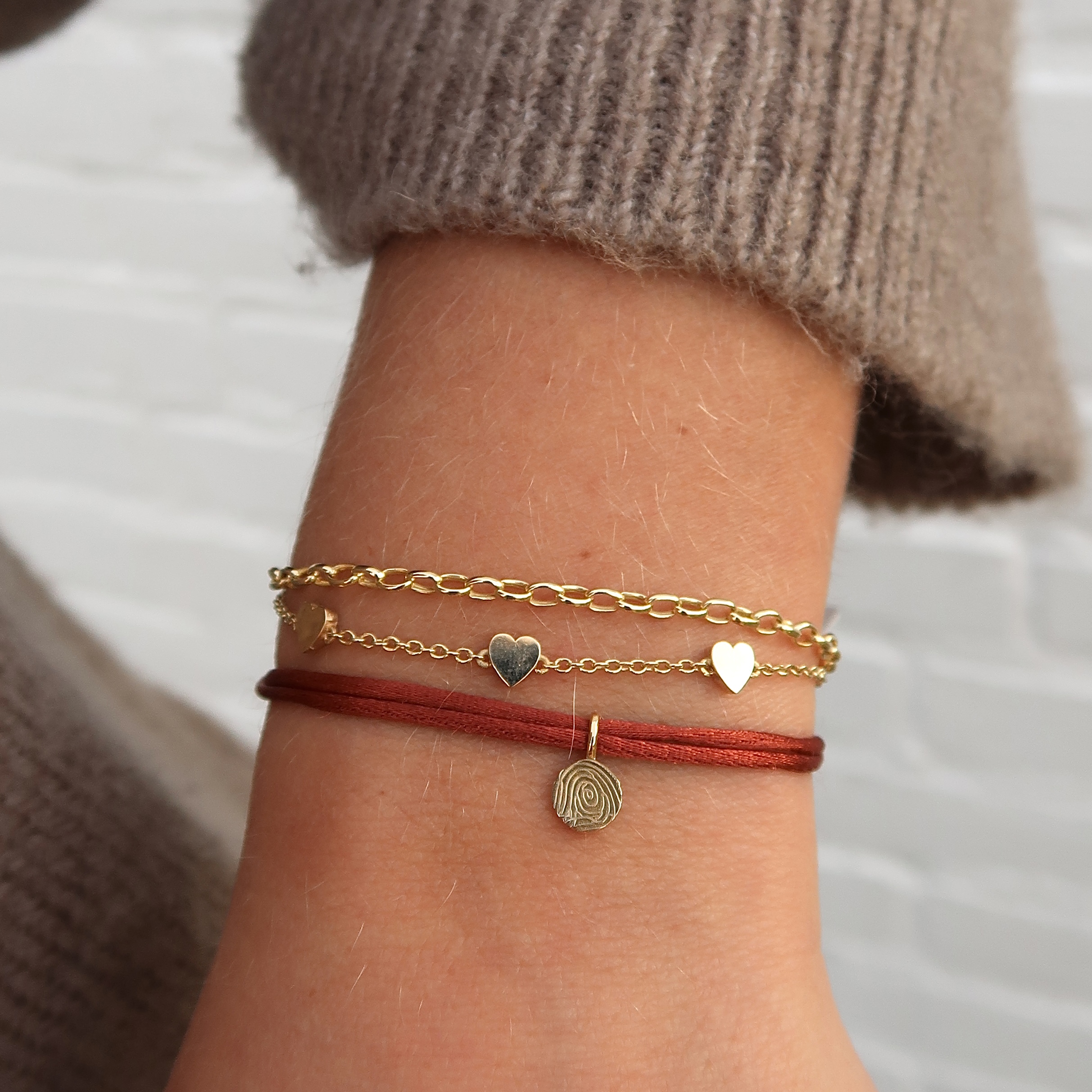 Ontdek de betekenis van liefde met deze prachtige Minioro armband, met drie kleine hartjes die symbool staan voor verbondenheid en eeuwige liefde.