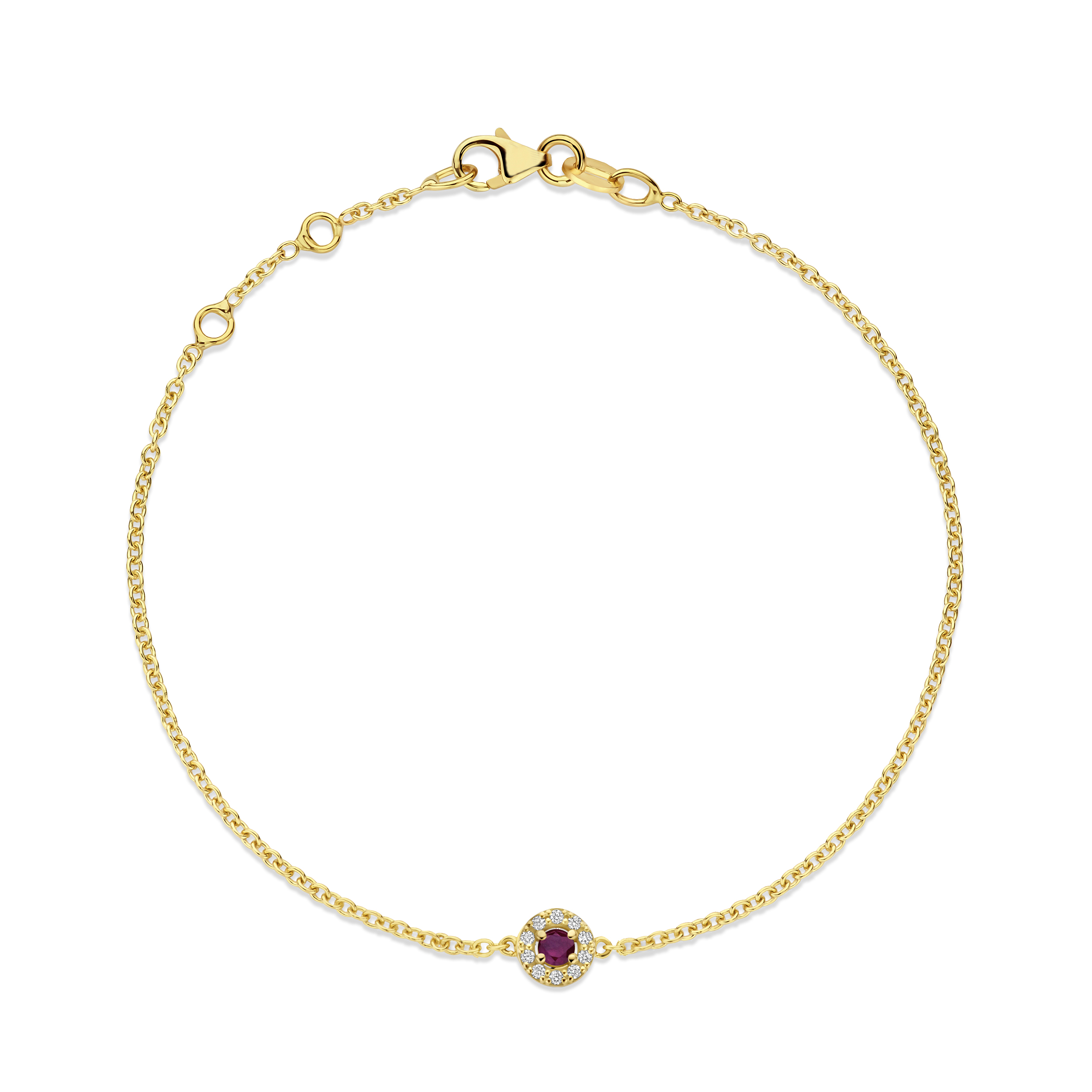Ontwerp je eigen Minioro Milestone Halo ankerarmband in 14 karaats goud, met een geboortesteen naar keuze omringd door een verfijnde halo van pavé-diamanten.
