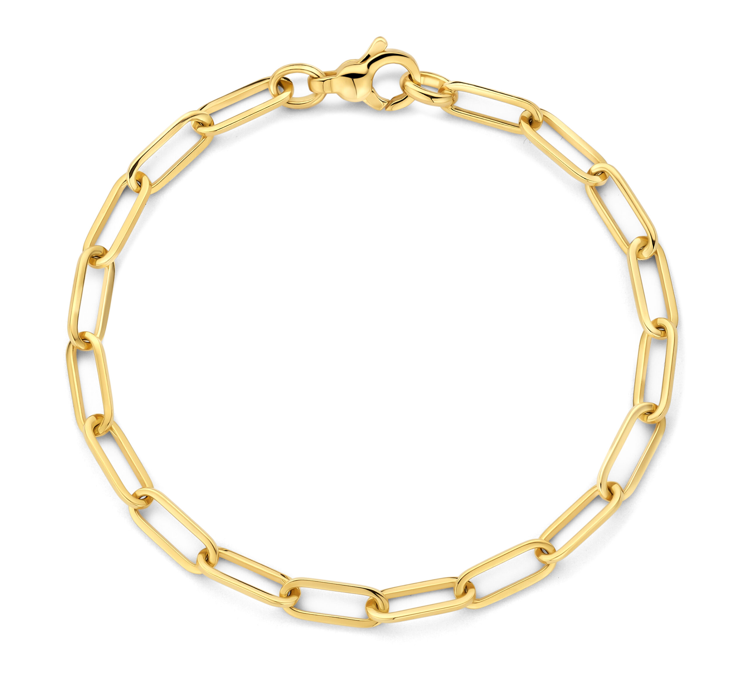 Deze massieve paperclip armband is volledig gemaakt van 14 karaats geelgoud en heeft brede paperclip-schakels van 4,7 mm.
