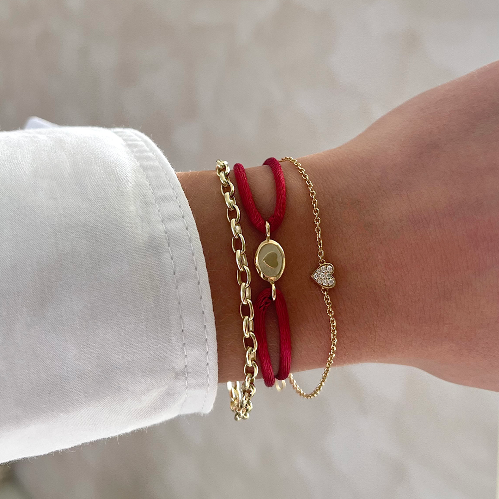 Ontwerp jouw eigen symbolische Minioro-ketting, vervaardigd uit 14-karaats goud, met een subtiel maar betekenisvol hart, bezet met pavé-diamanten, als centraal element.