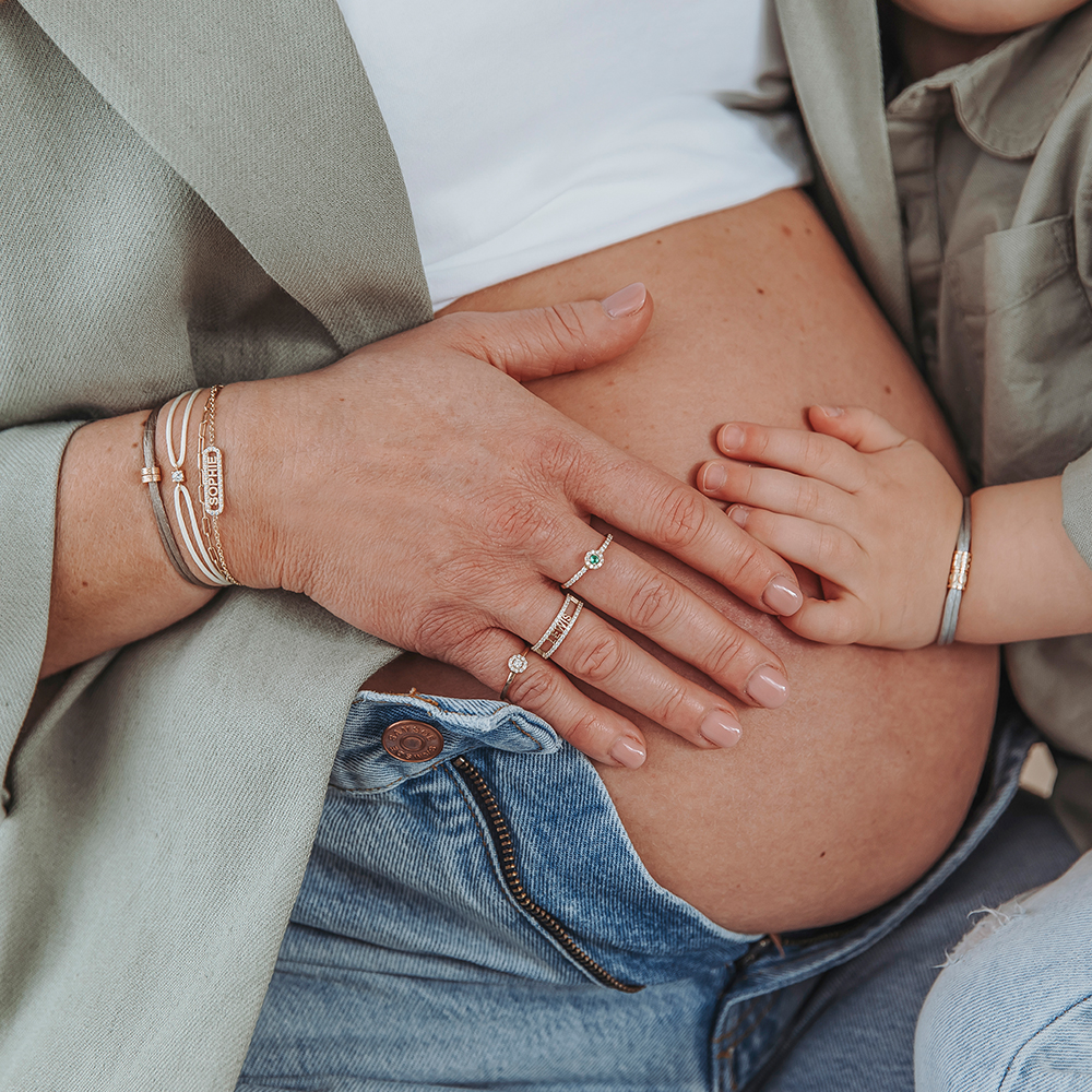 Deze 14 karaats gouden bedel is rondom gegraveerd met één initiaal of symbool dat zich acht keer herhaalt – subtiel, krachtig en helemaal van jou.