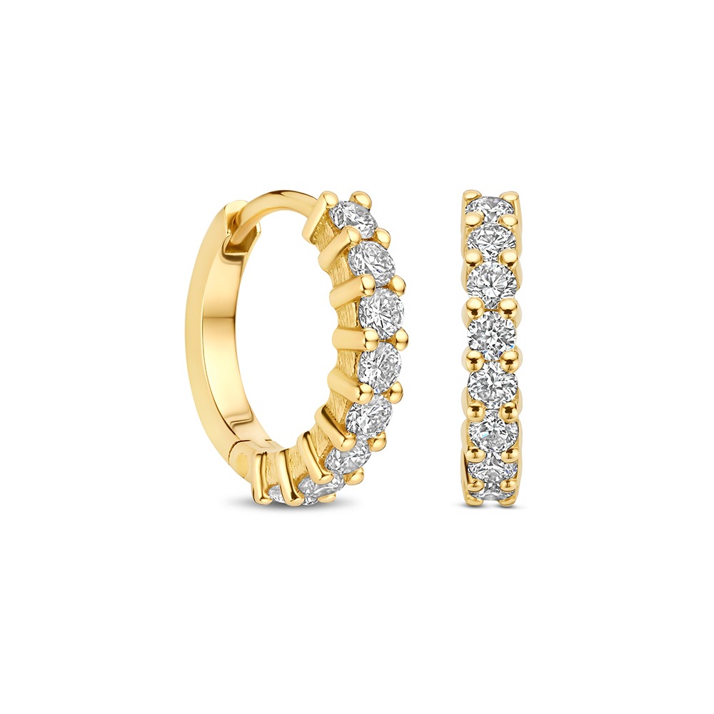 De diamanten zijn zorgvuldig en subtiel gezet. Ze volgen de vorm van de oorbel, waardoor een vloeiend en harmonieus geheel ontstaat. Daarnaast zorgt deze plaatsing ervoor dat het licht op een elegante manier wordt gevangen. Hierdoor krijgen de creolen een rustige maar luxe uitstraling.