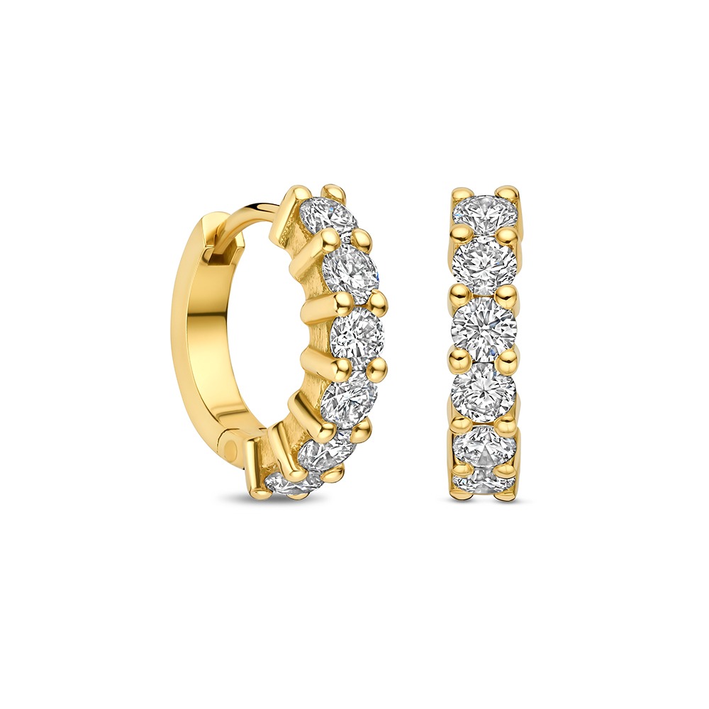 De Creolen Juliet Small zijn compacte en elegante creolen van 14 karaats goud. Het ontwerp is verfijnd, tijdloos en perfect voor dagelijks gebruik. De creolen zijn bezet met een rij briljant geslepen lab grown diamanten van 0.05 karaat. Hierdoor ontstaat een subtiele maar luxe schittering.