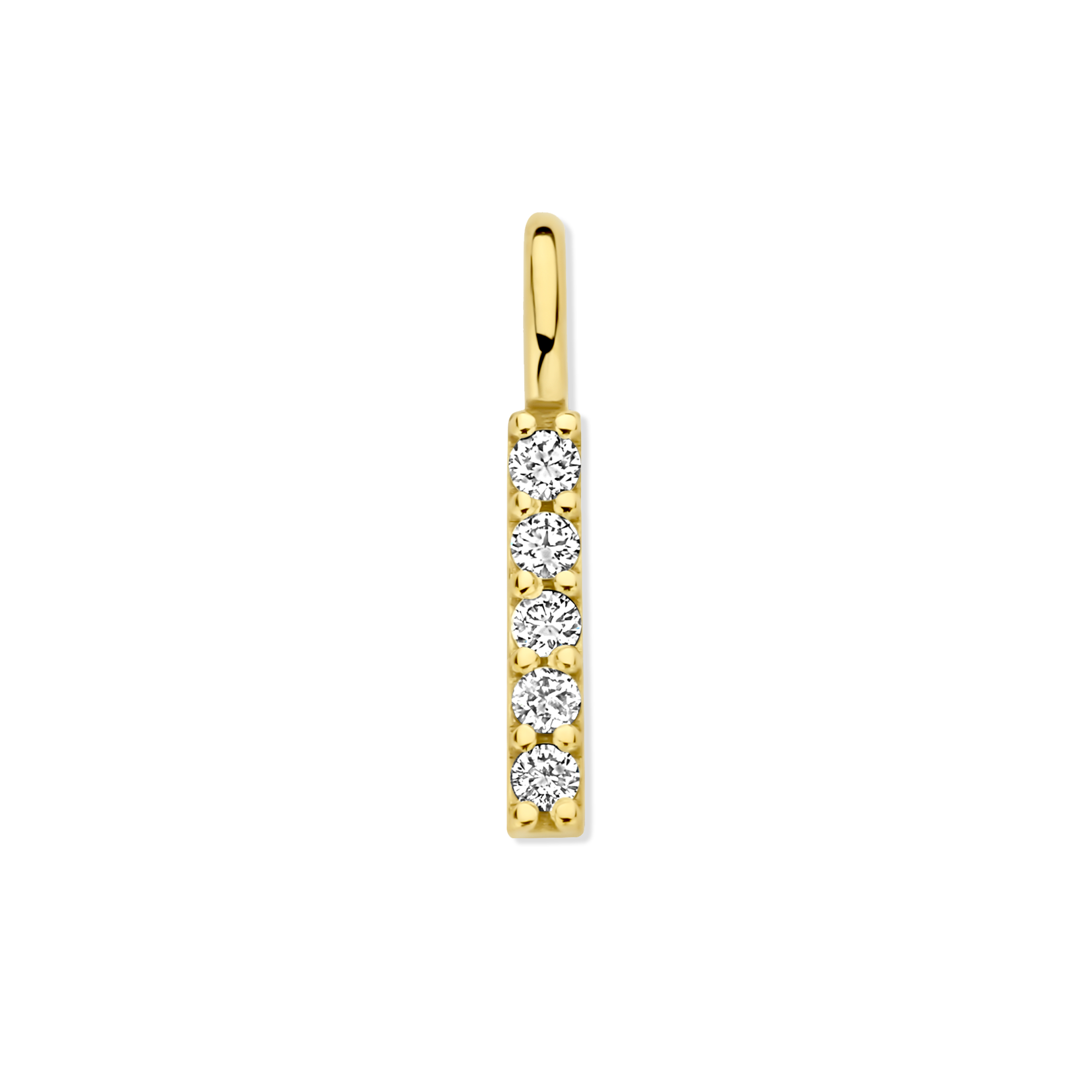 Maak je sieraden nog persoonlijker met onze unieke hangbedels. Deze witte variant van de Diamondbar Tag Small is een elegante toevoeging: een 14 karaats gouden staafje, bezet met vijf witte diamanten met een totaalgewicht van 0,05 ct. Prachtig aan een ketting of armband en ideaal voor een verfijnd en persoonlijk statement.