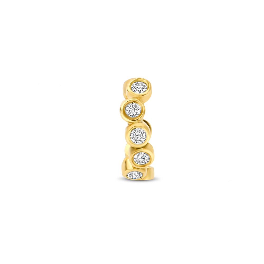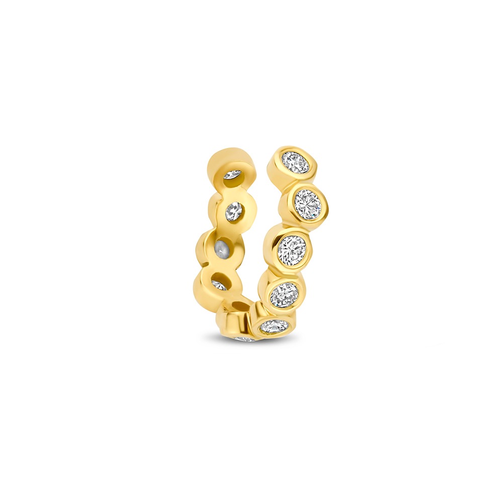 De Earcuff Conny is een speels en modern sieraad van 14 karaats goud. Het ontwerp is verfijnd en toch luchtig, waardoor het een eigentijdse uitstraling heeft. De earcuff is bezet met ronde lab grown diamanten die subtiel in gladde zettingen zijn verwerkt. Hierdoor ontstaat een zachte en elegante schittering.