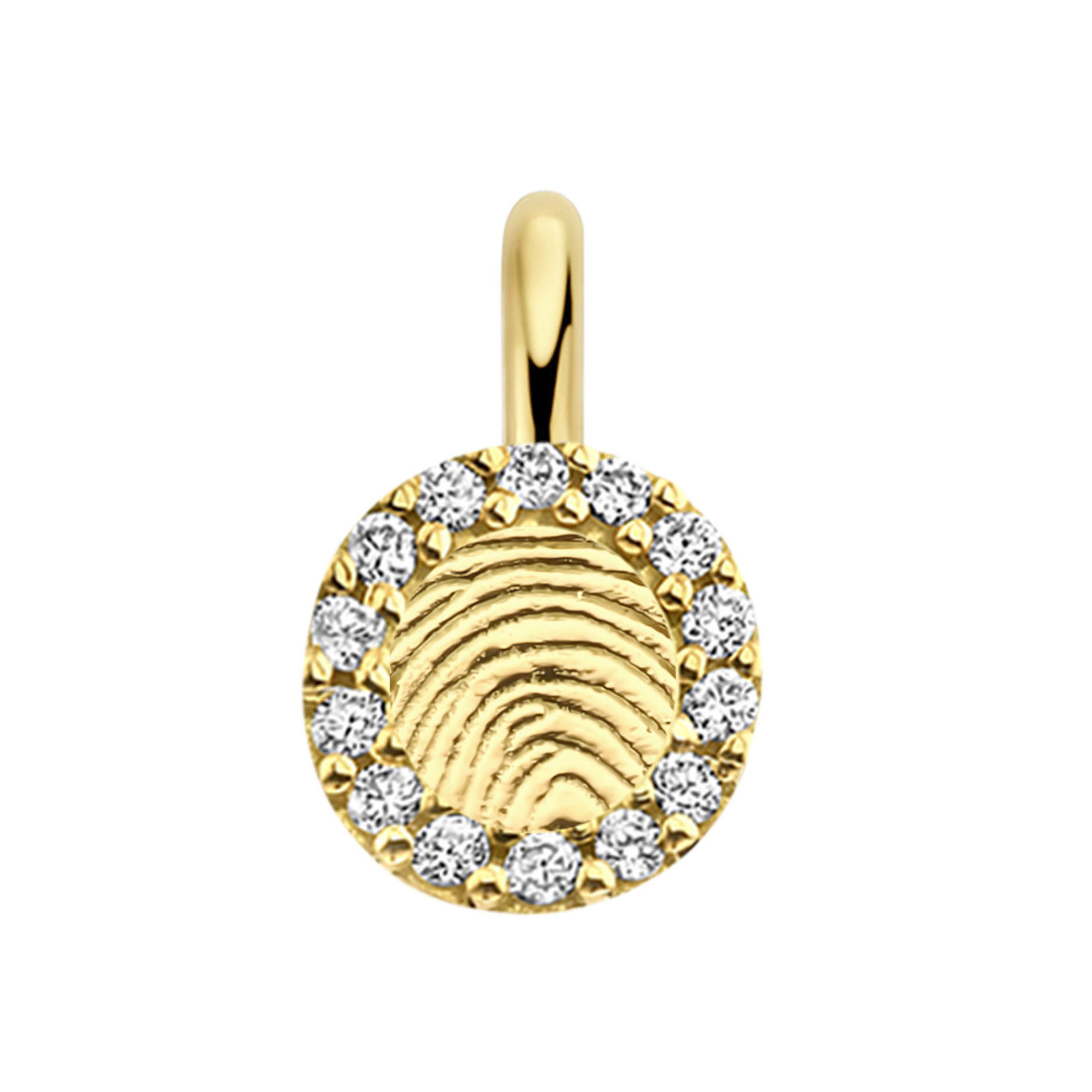 Deze ronde Halo hanger is gemaakt van 14 karaats goud en wordt voorzien van een verfijnde 3D-vingerafdruk. De afdruk wordt niet gelaserd, maar met innovatieve 3D-techniek in reliƫf verwerkt, waardoor een tastbaar en voelbaar sieraad ontstaat. De hanger is omlijst door een schitterende halo van diamanten, die de vingerafdruk extra laten stralen. Zo ontstaat een uniek herinneringssieraad dat luxe en emotie subtiel combineert, een fonkelende manier om dierbare momenten altijd dichtbij te dragen.