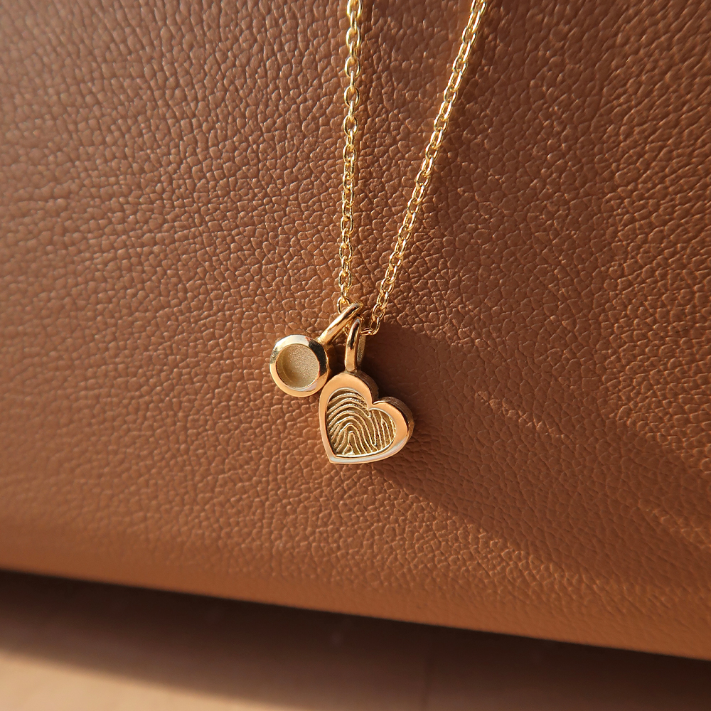 Deze tijdloze hart hanger is verkrijgbaar in 14 karaats goud en kan worden voorzien van een verfijnde 3D vingerafdruk.