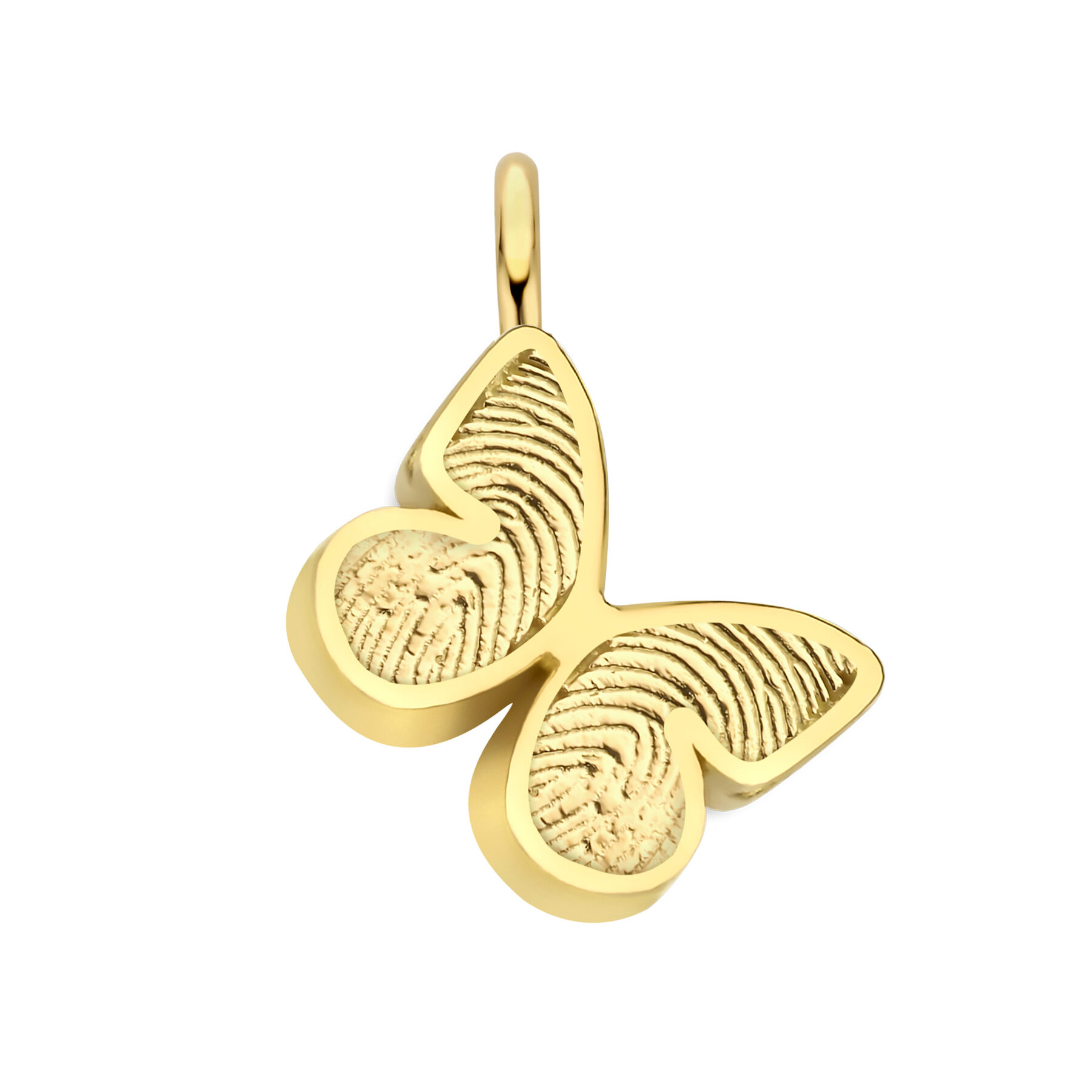 Deze grotere, sierlijke vlinder hanger is verkrijgbaar in 14 karaats goud en kan worden voorzien van een persoonlijke 3D vingerafdruk.