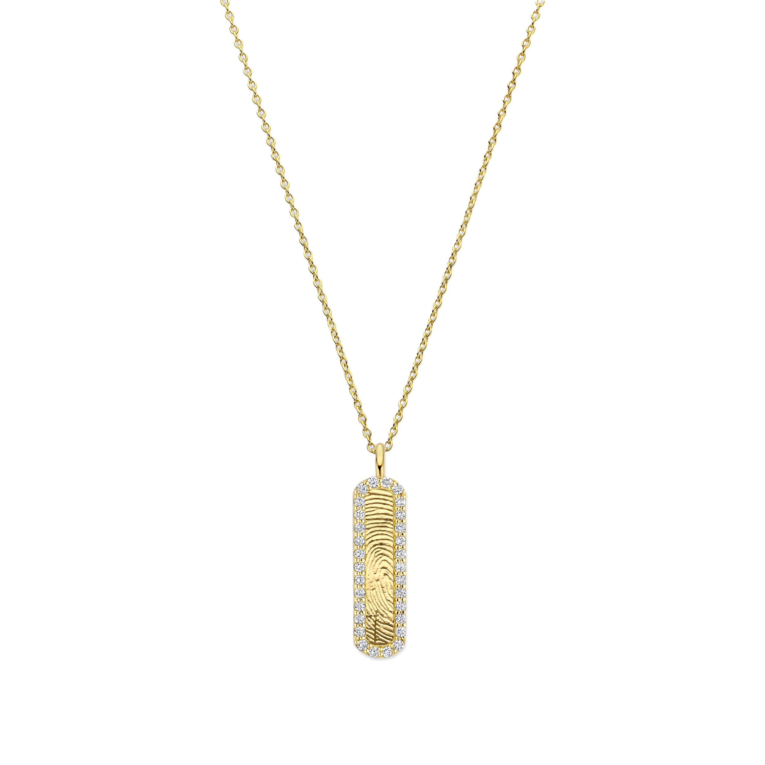 Deze elegante ketting is voorzien van de Bend Touch Pavé hanger in 14 karaats goud, die kan worden gepersonaliseerd met een unieke 3D vingerafdruk.