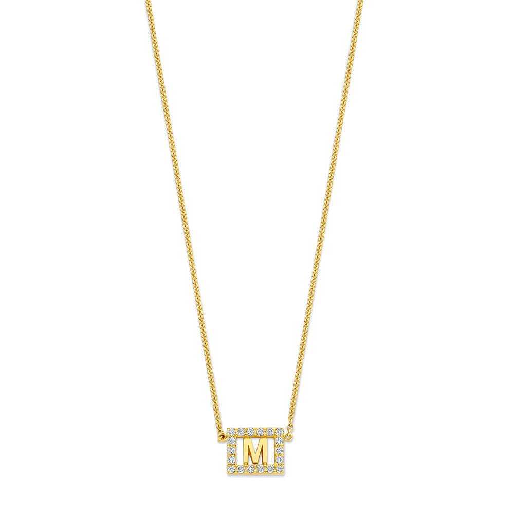 Deze ketting is voorzien van een elegante vierkante bedel met één initiaal in het midden, waardoor het perfect is om een betekenisvolle letter te dragen die jouw verhaal vertelt.