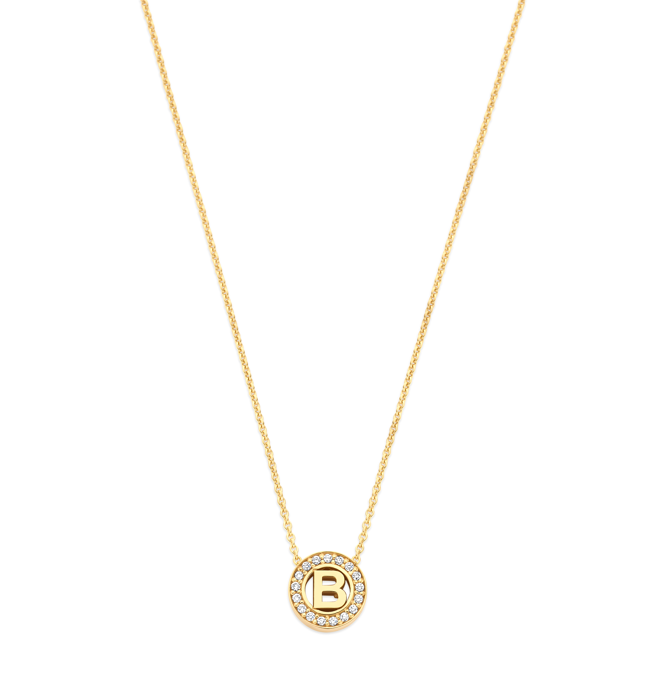 Deze ketting is prachtig versierd met pavé gezette diamanten met een totaal gewicht van 0.16 ct en biedt de mogelijkheid om een initiaal naar keuze in het middelpunt te plaatsen.