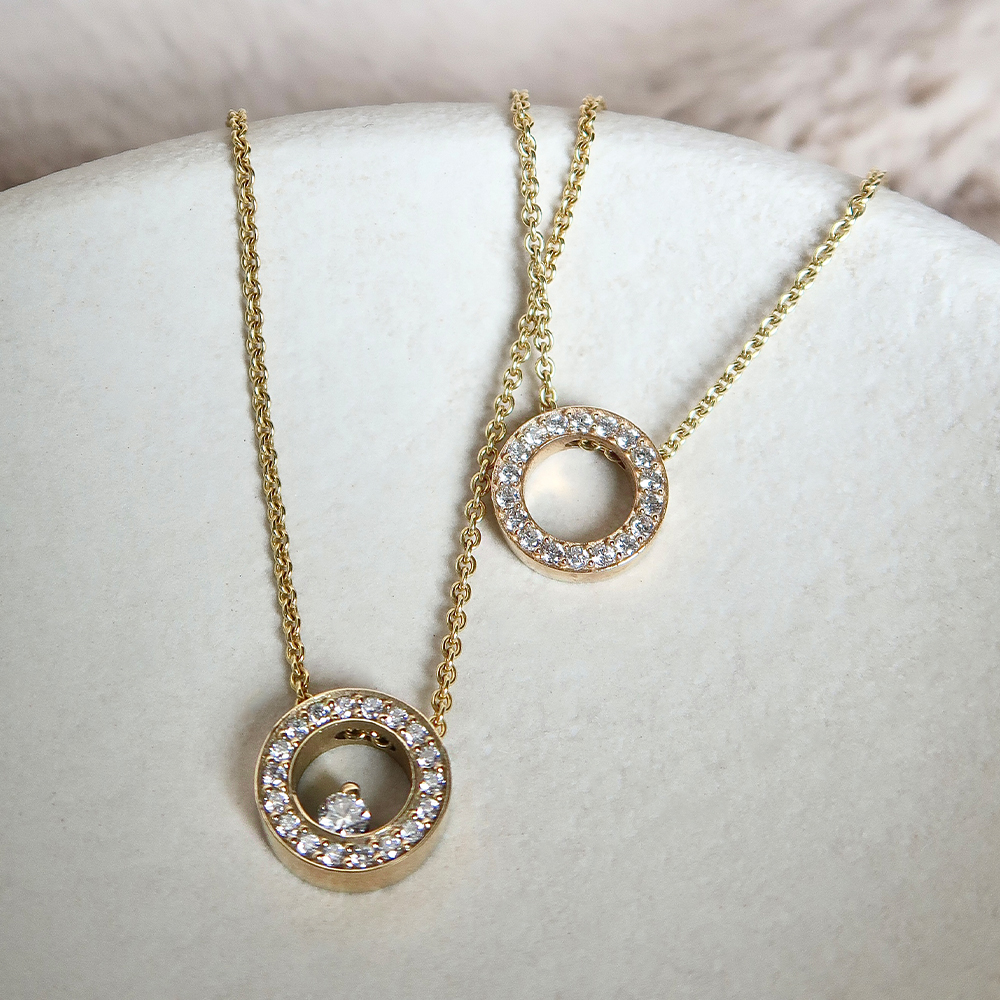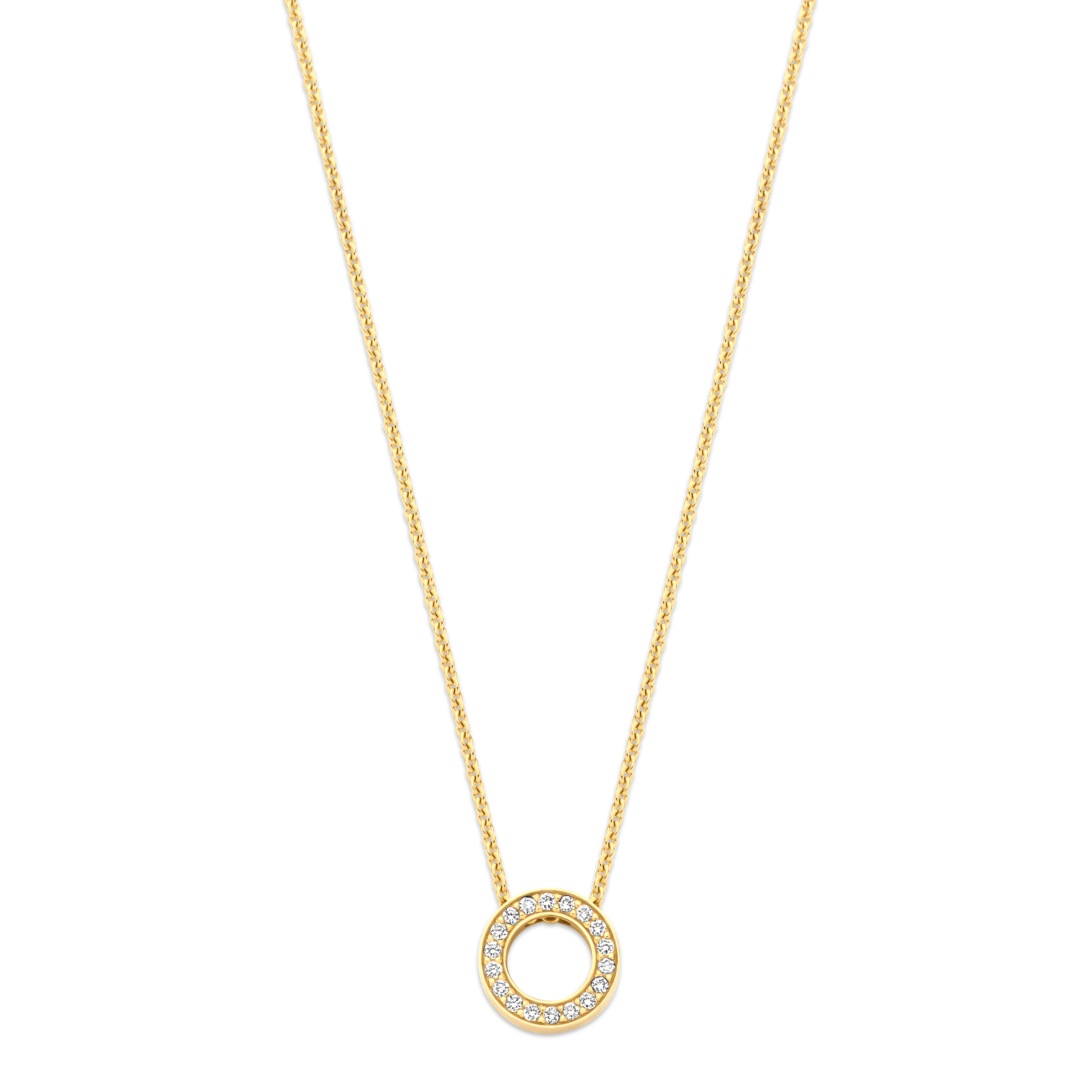 Met sprankelende witte diamanten pavé gezet in de cirkel, voegt deze ketting een vleugje schittering toe met een totaal gewicht van 0.12 ct.