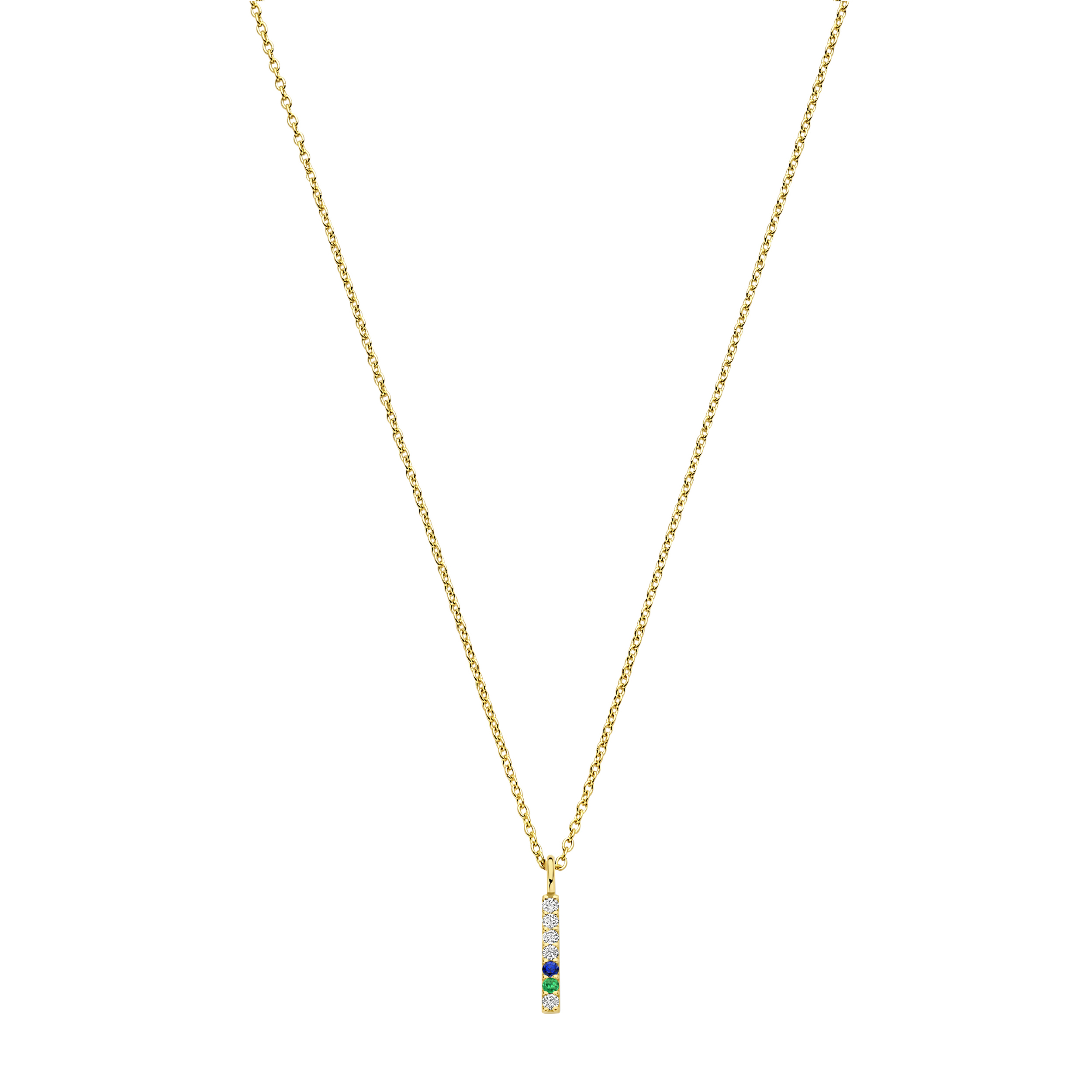 De ketting Diamondbar Milestone is gemaakt van 14 karaats goud en voorzien van een gouden hanger in staafvorm, pavé bezet met vijf witte diamanten en twee geboortestenen naar keuze. Een subtiele eyecatcher met betekenis. Draag haar dagelijks als symbool van verbondenheid, een verfijnde manier om de band met je dierbaren altijd dicht bij je te houden.
