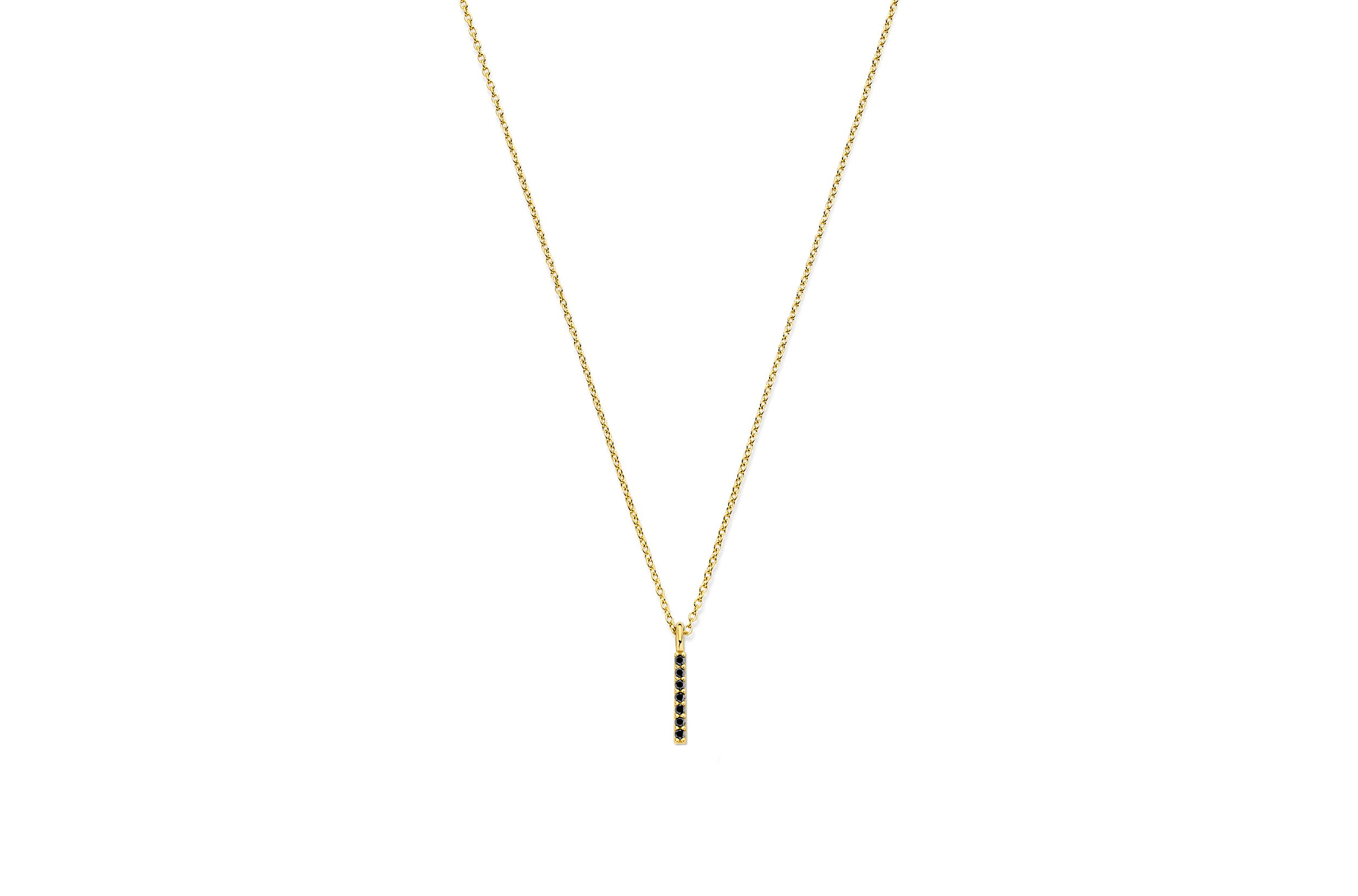 Deze prachtige ketting is vervaardigd van hoogwaardig 14-karaats goud en is bezet met schitterende zwarte diamanten met een totaal gewicht van 0.07 karaat.