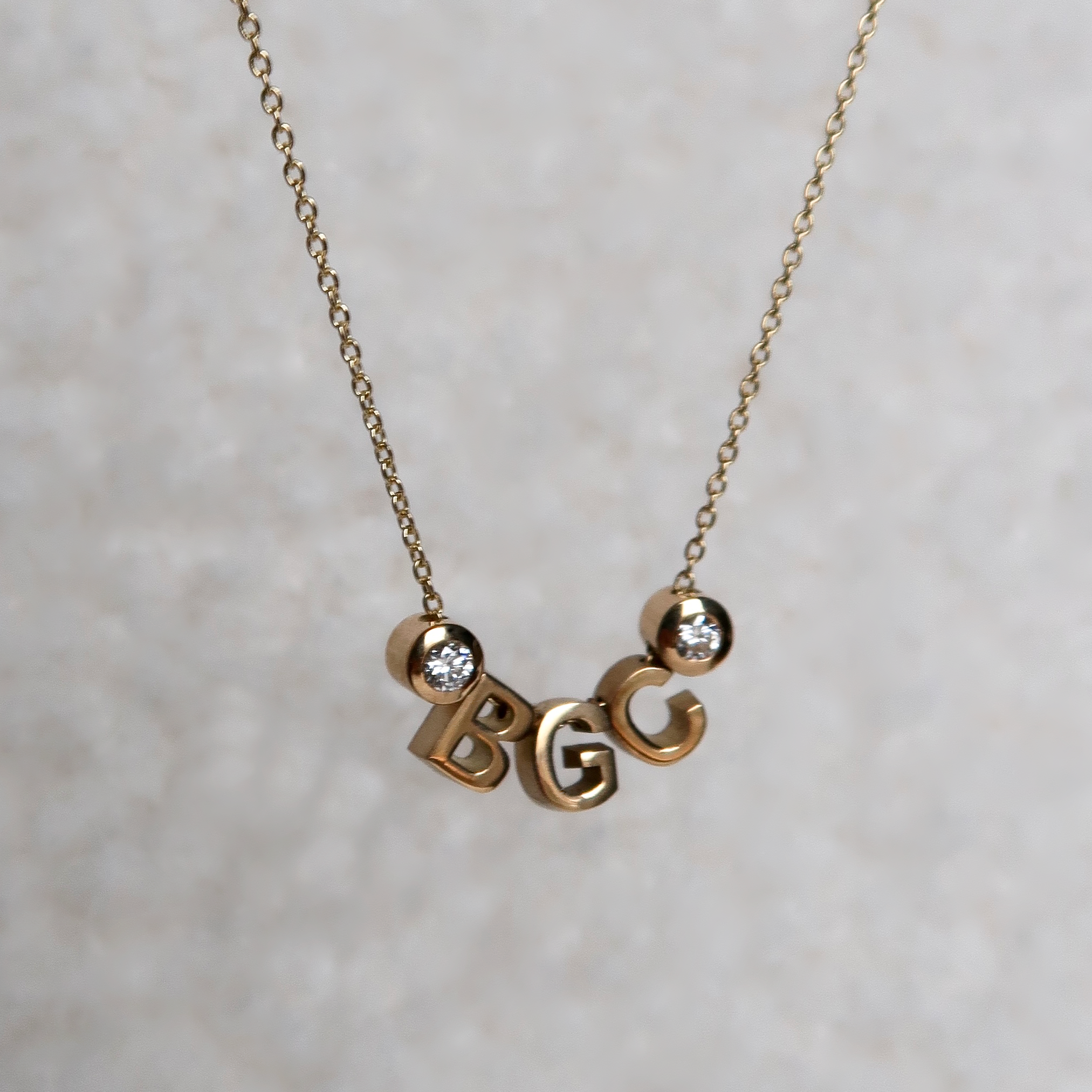 Combineer onze Letterbedels met een zelf samengestelde ketting en voeg andere bedels uit onze collecties toe, zoals een Diamondbar Tag, Ovalia, initiaal en symbool.