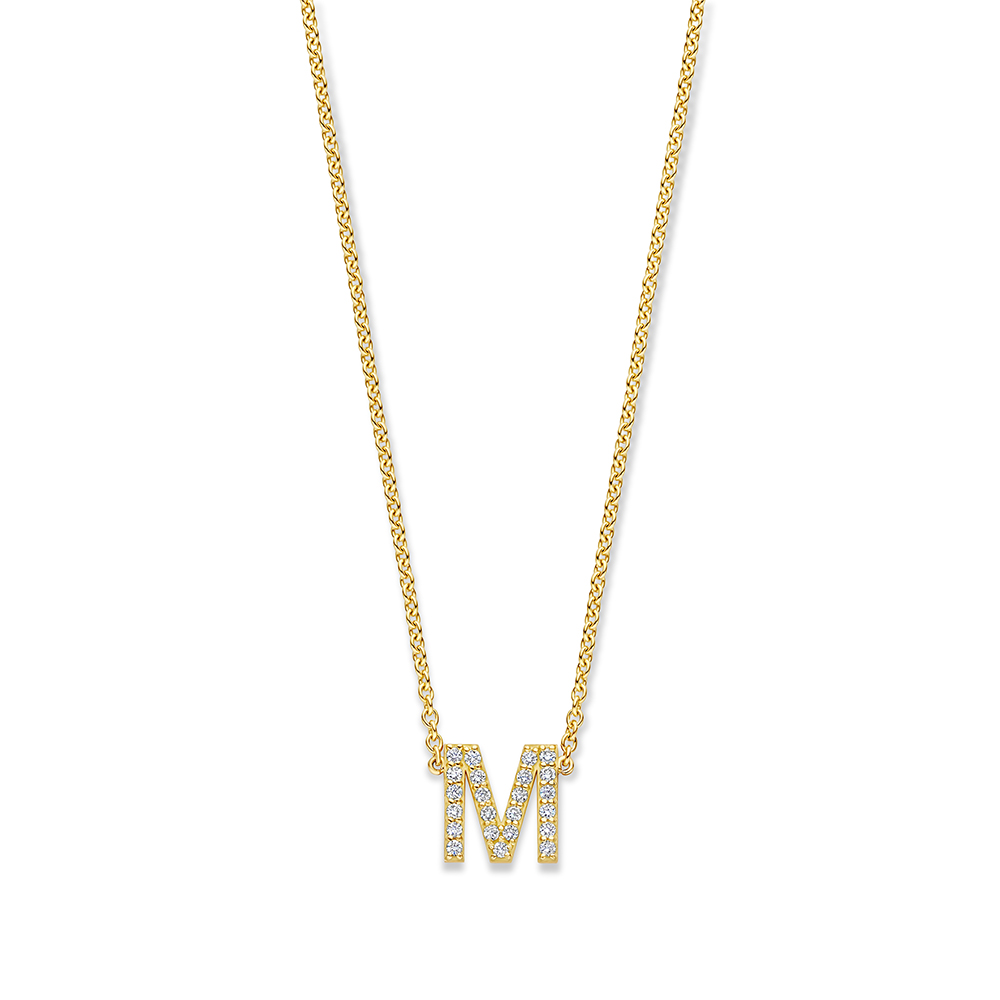 Deze opvallende ketting Initiaal Pavé is bezet met sprankelende pavé gezette diamanten en gemaakt van 14 karaats goud.