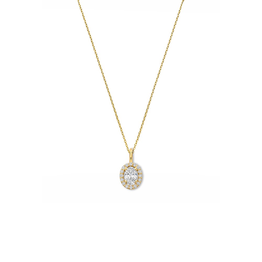 De halo van kleine diamanten versterkt de schittering van de middensteen en zorgt voor een sprankelend geheel!