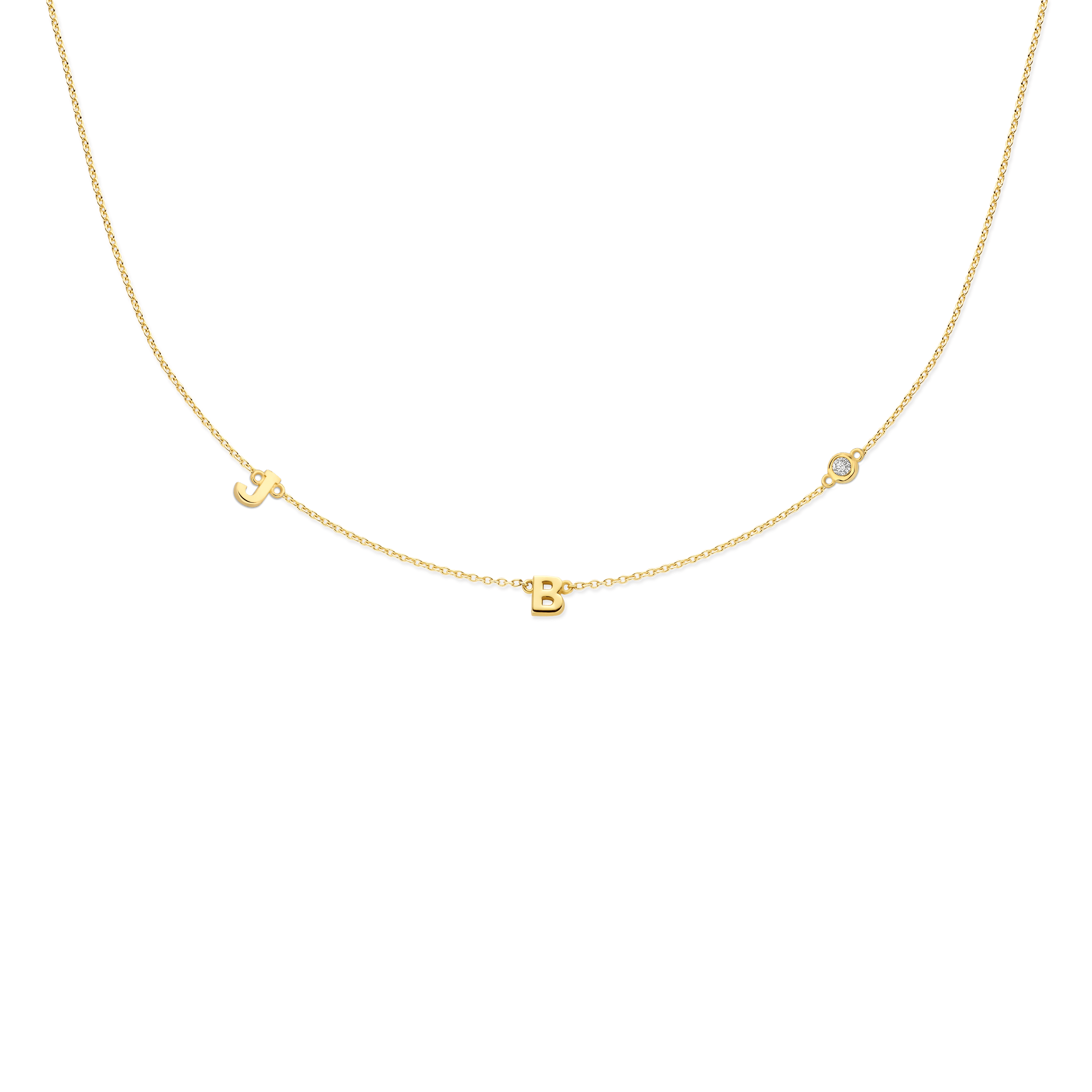Ontwerp jouw unieke Minioro Mini Mi 3 ketting en mix & match met kleine symbolen, initialen, diamantjes en milestones!