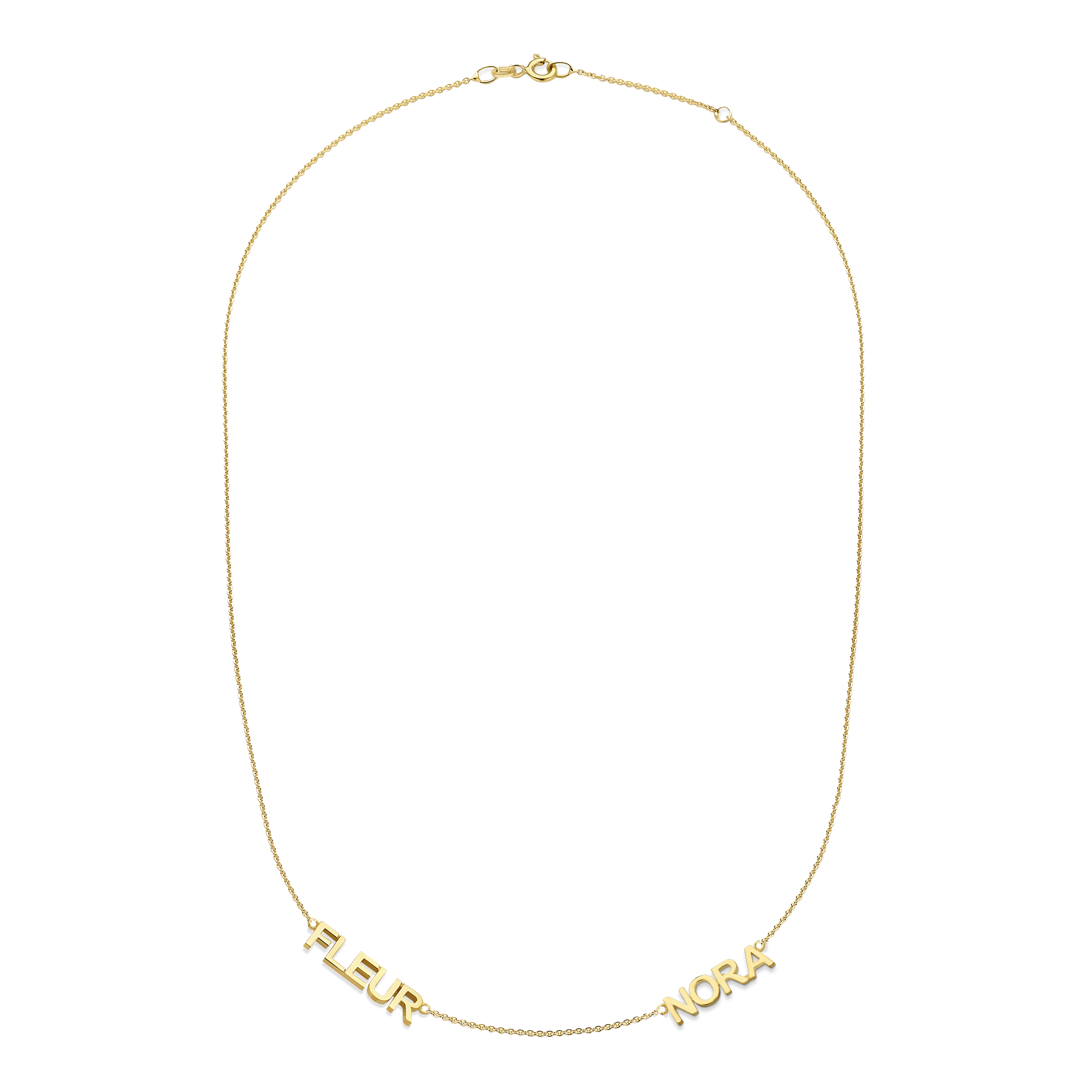 Met de Nametag 2 ketting voeg je twee persoonlijke naamplaatjes toe aan een 14 karaats gouden ankerketting.