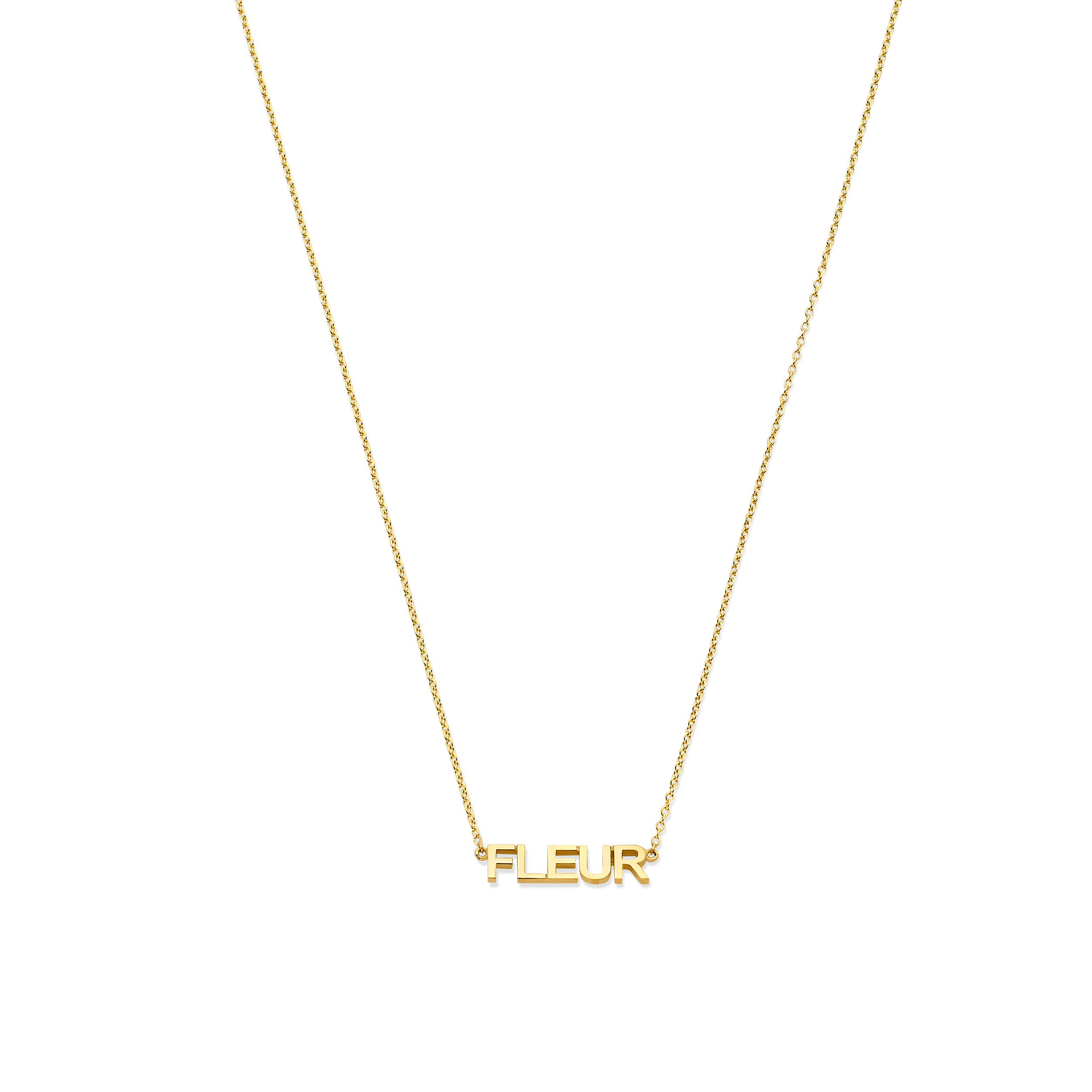 Creëer jouw eigen Nametag ketting, een persoonlijk sieraad van 14-karaats goud met jouw naam of een ander betekenisvol woord.