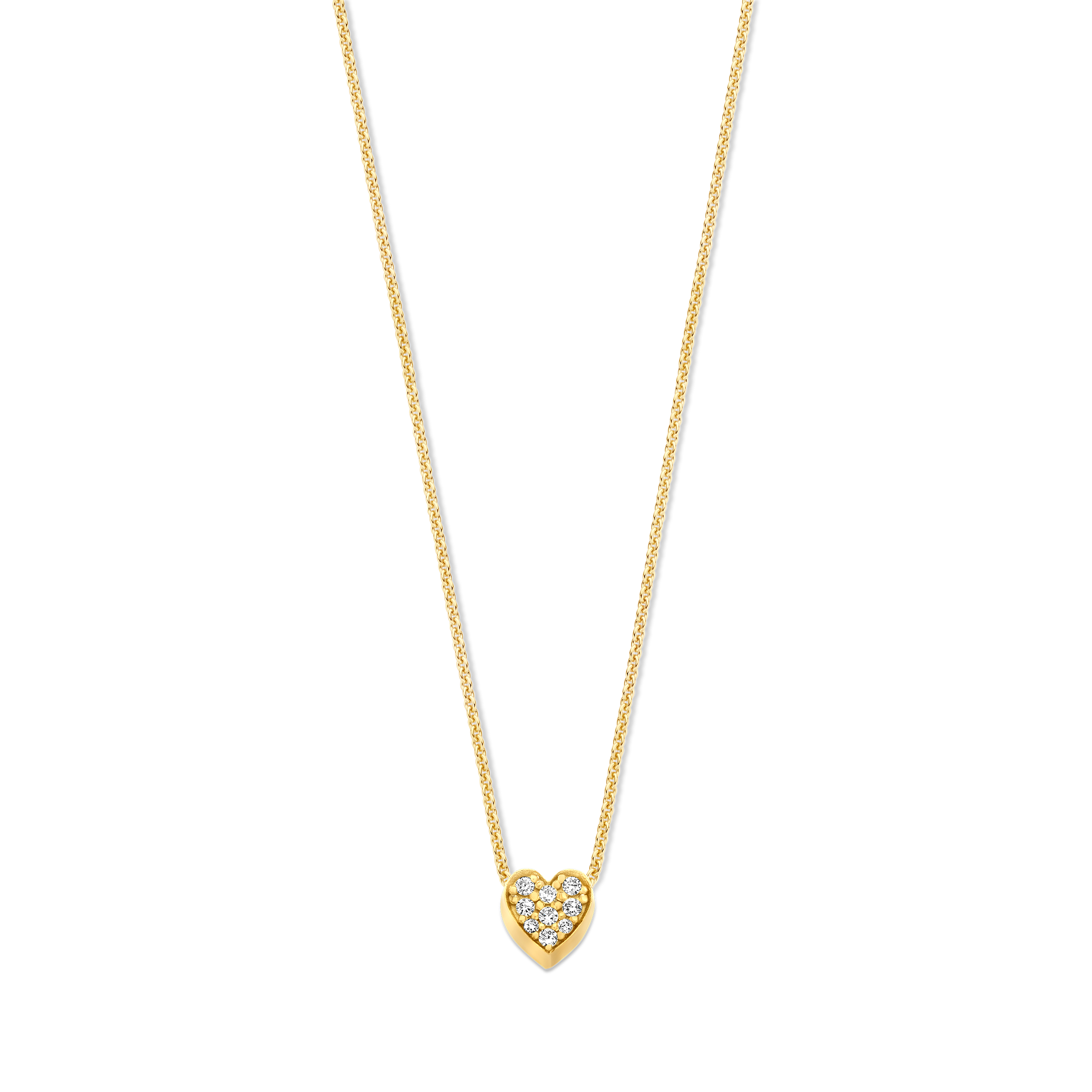 Ontwerp jouw eigen symbolische Minioro-ketting, vervaardigd uit 14-karaats goud, met een subtiel maar betekenisvol hart, bezet met pavé-diamanten, als centraal element.
