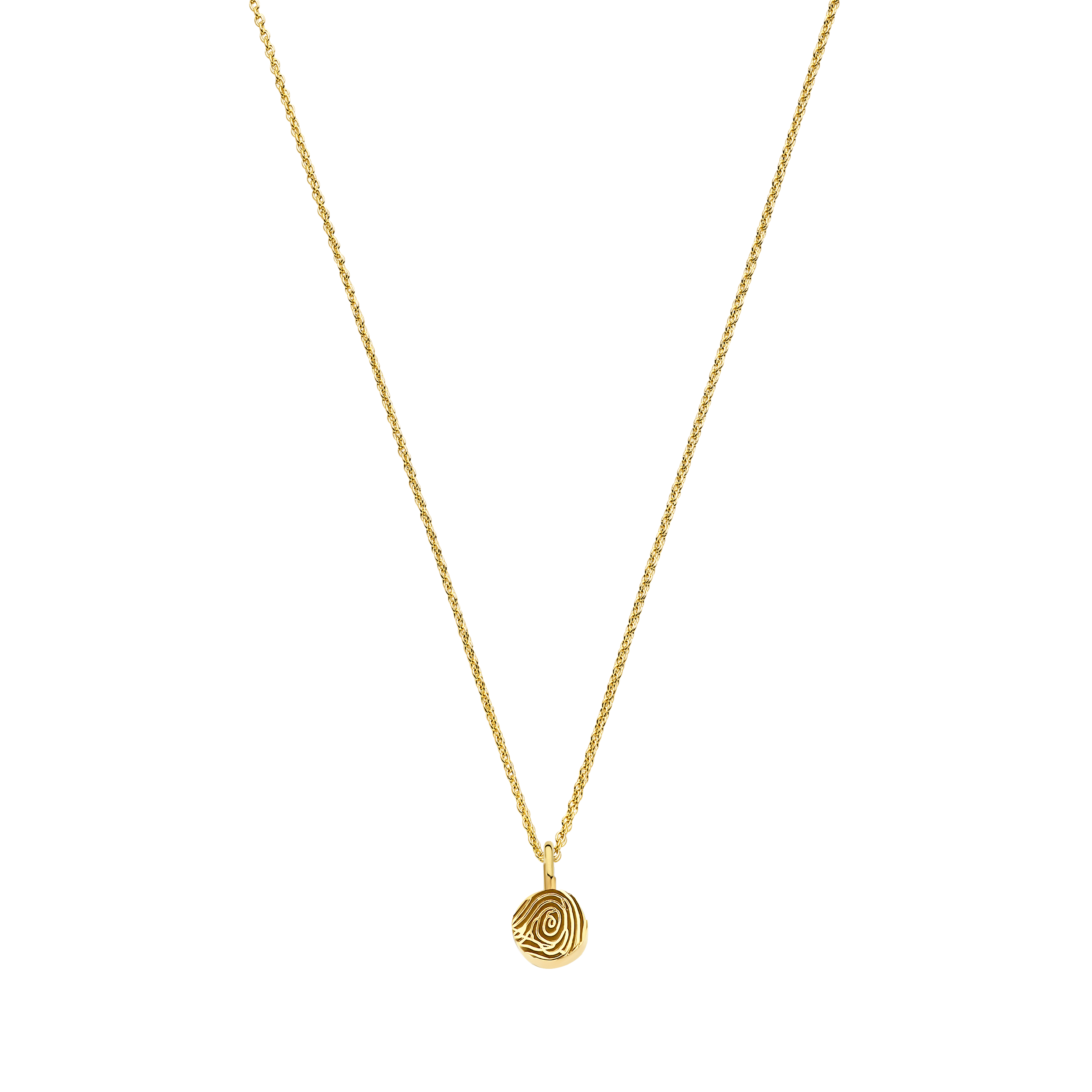 Creëer een onvergetelijk aandenken met onze Vingerafdruk Hangmunt Ketting, een prachtig 14-karaats gouden sieraad met een hangbedel waarop een persoonlijke vingerafdruk liefdevol lasergegraveerd kan worden.