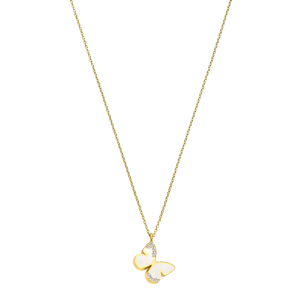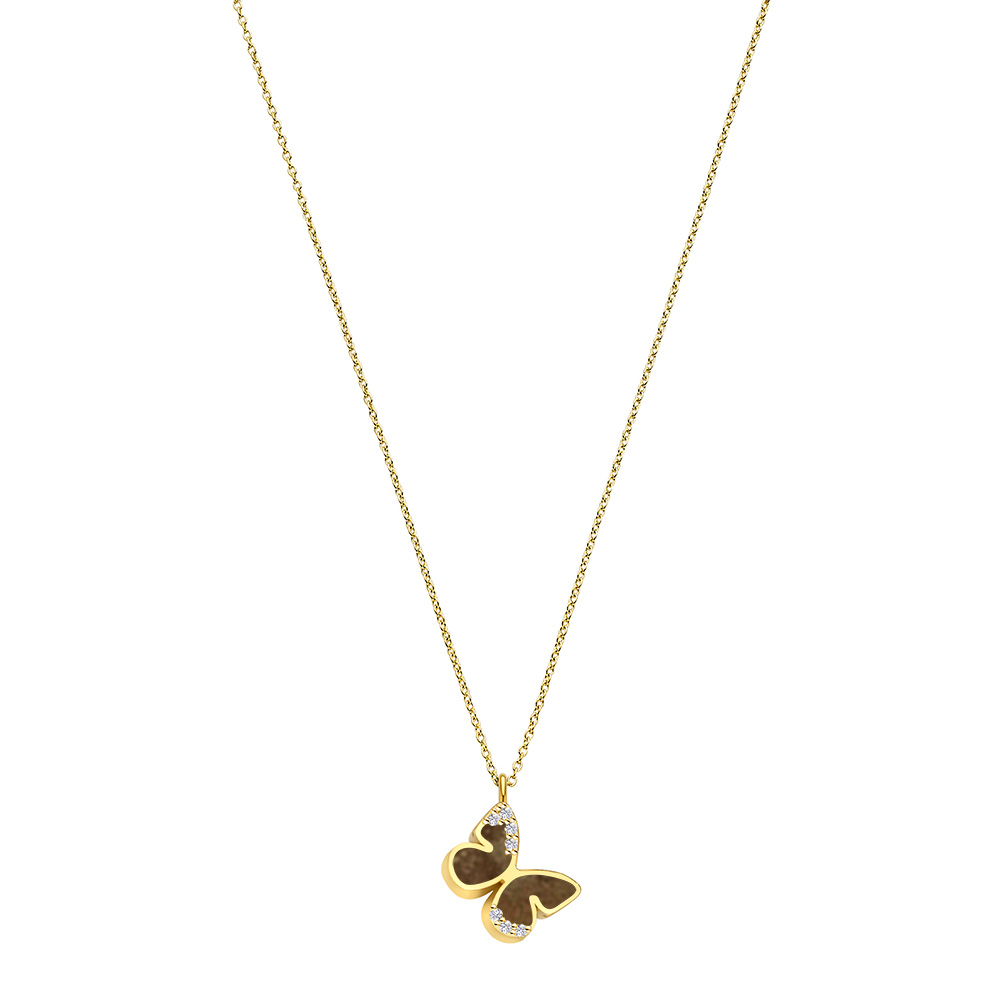 De Ketting Vlinder Memory Pavé Large is een luxueuze variant, uitgevoerd in 14-karaats goud.