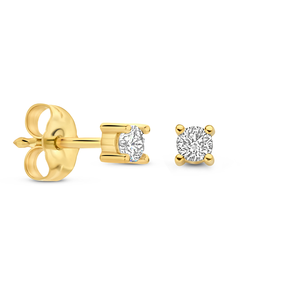 Deze oorstekers zijn vervaardigd uit hoogwaardig 14-karaats goud en elk voorzien van een schitterende diamant van 0.10 ct.