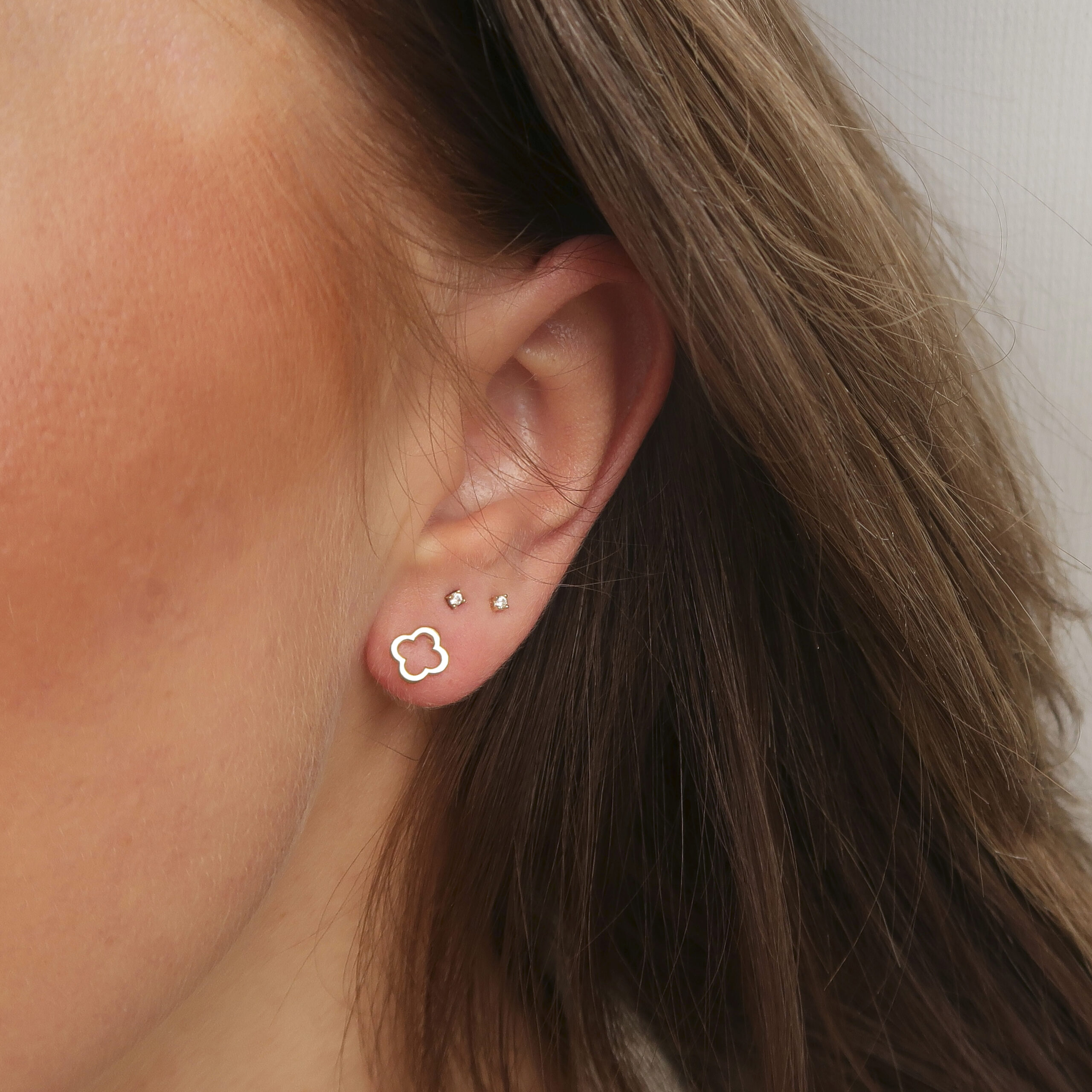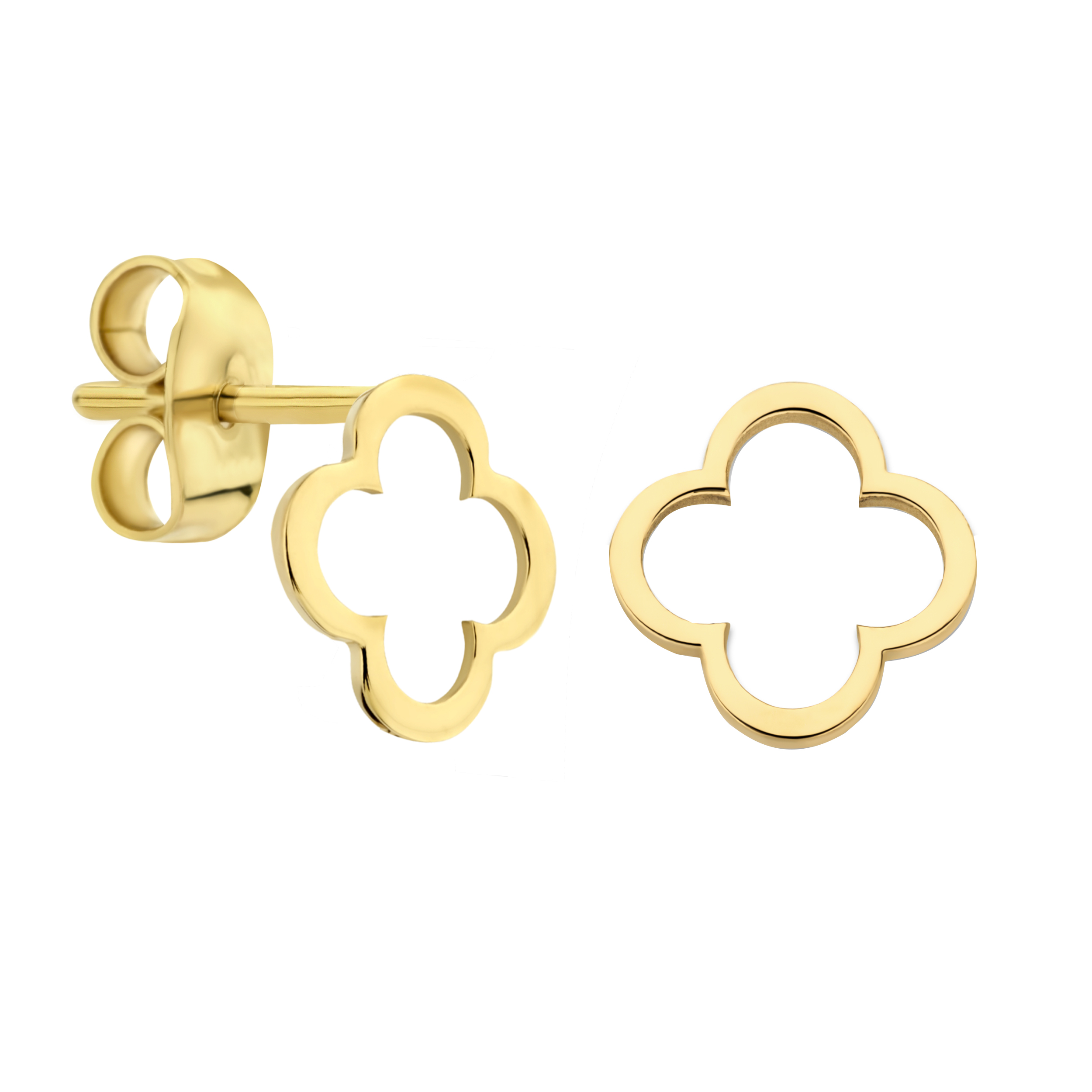 Deze oorstekers zijn gemaakt van 14-karaats goud en zijn geïnspireerd op een elegant, open bladvormig ontwerp en voegt een speelse touch toe aan je look.