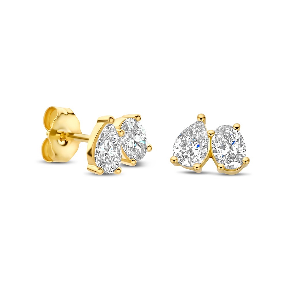 De oorstekers zijn bezet met twee lab grown diamanten van elk 0.25 karaat. Enerzijds is er een peer geslepen diamant en anderzijds een ovaal geslepen diamant. Samen symboliseren zij verbinding en balans. Tegelijkertijd zorgt de combinatie van vormen voor een speels en eigentijds karakter.