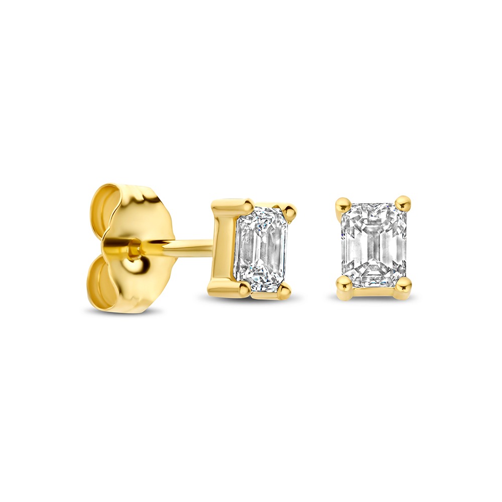 De emerald slijpvorm heeft strakke, rechthoekige lijnen. Hierdoor krijgt het ontwerp een rustige en geometrische uitstraling. Tegelijkertijd zorgt deze slijpvorm voor een verfijnde lichtreflectie die subtiel en elegant oogt. Hierdoor blijven de oorstekers stijlvol zonder te overheersen.