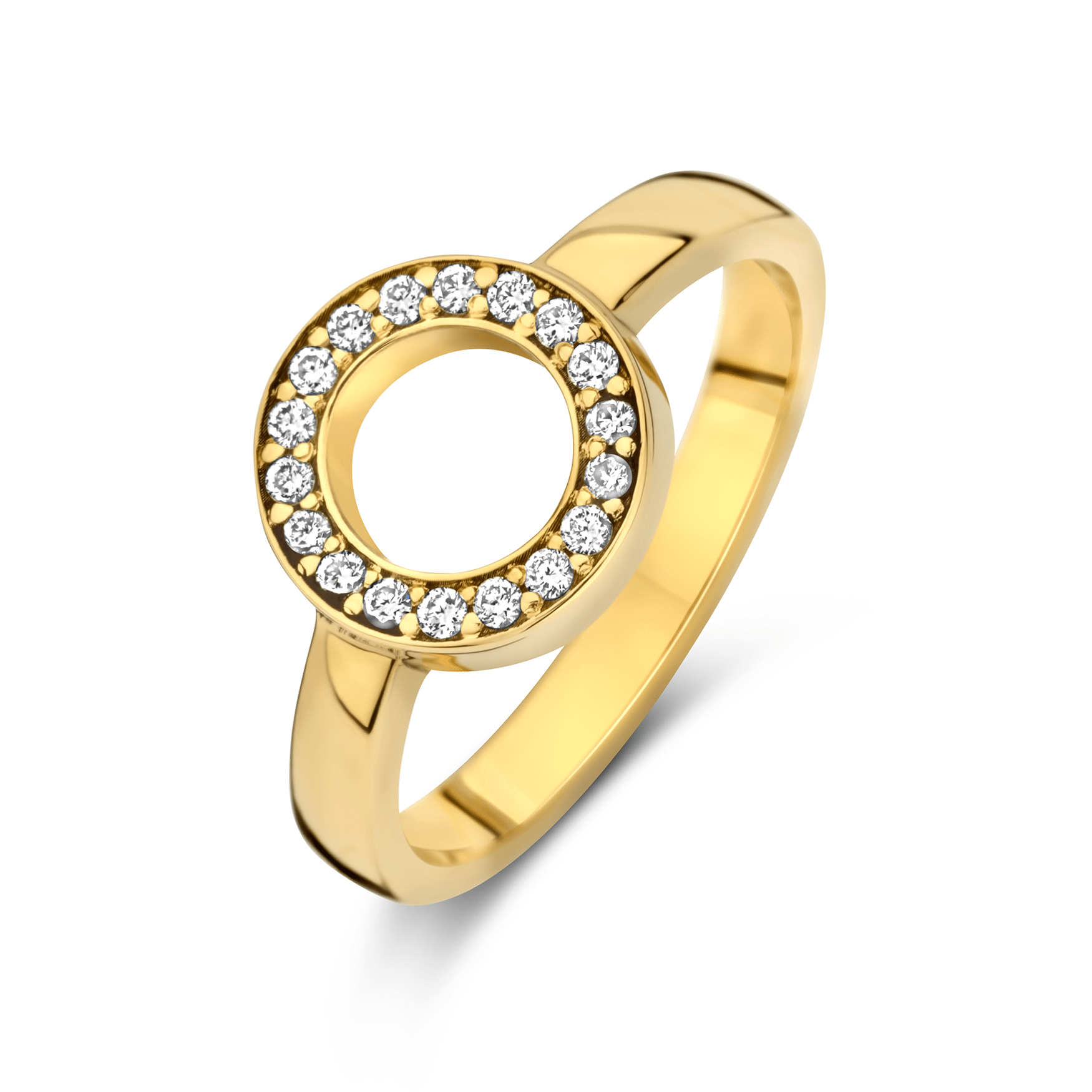 Deze prachtige Circle Pavé ring, gemaakt van 14-karaats goud, straalt tijdloze elegantie uit en is ontworpen om te dragen bij elke gelegenheid.