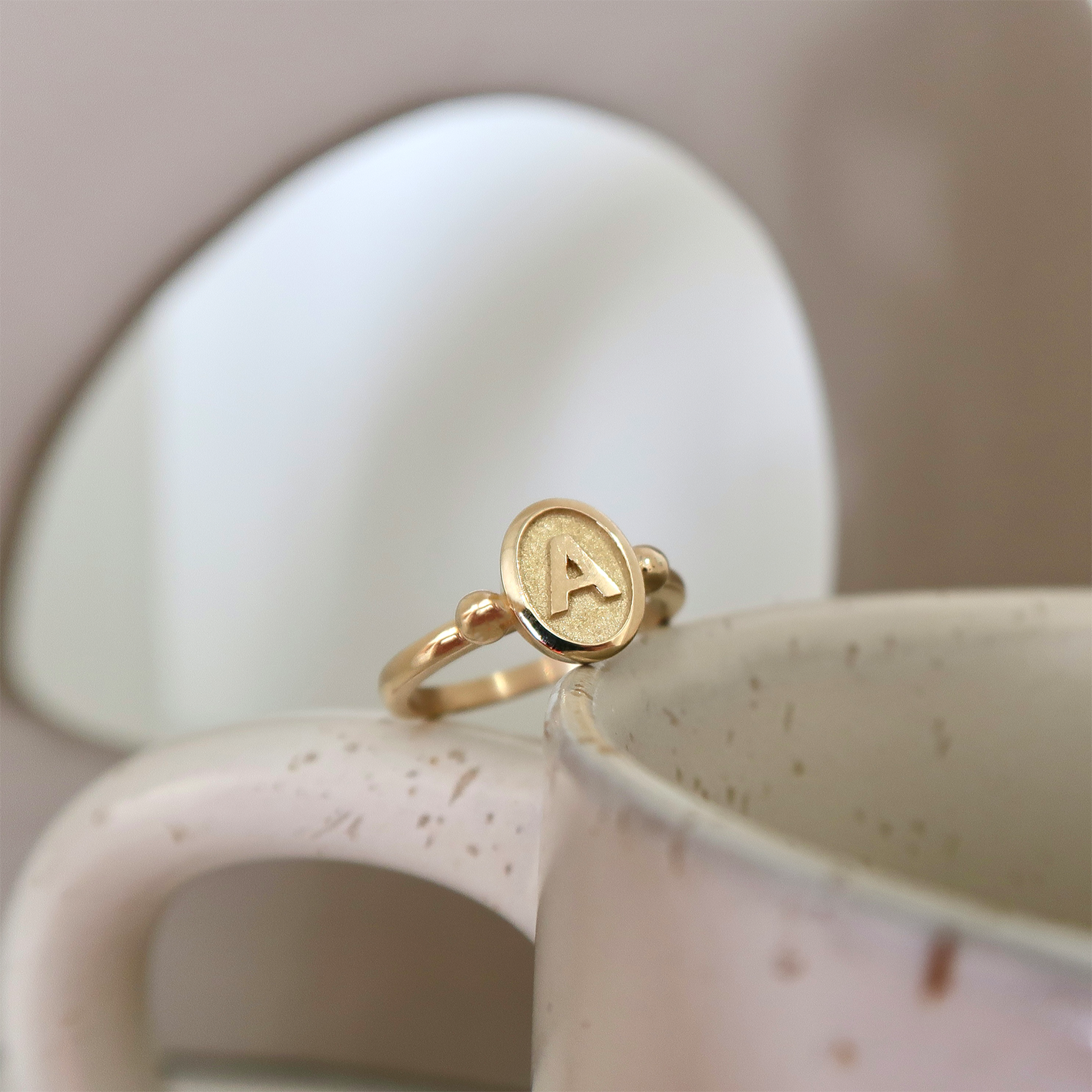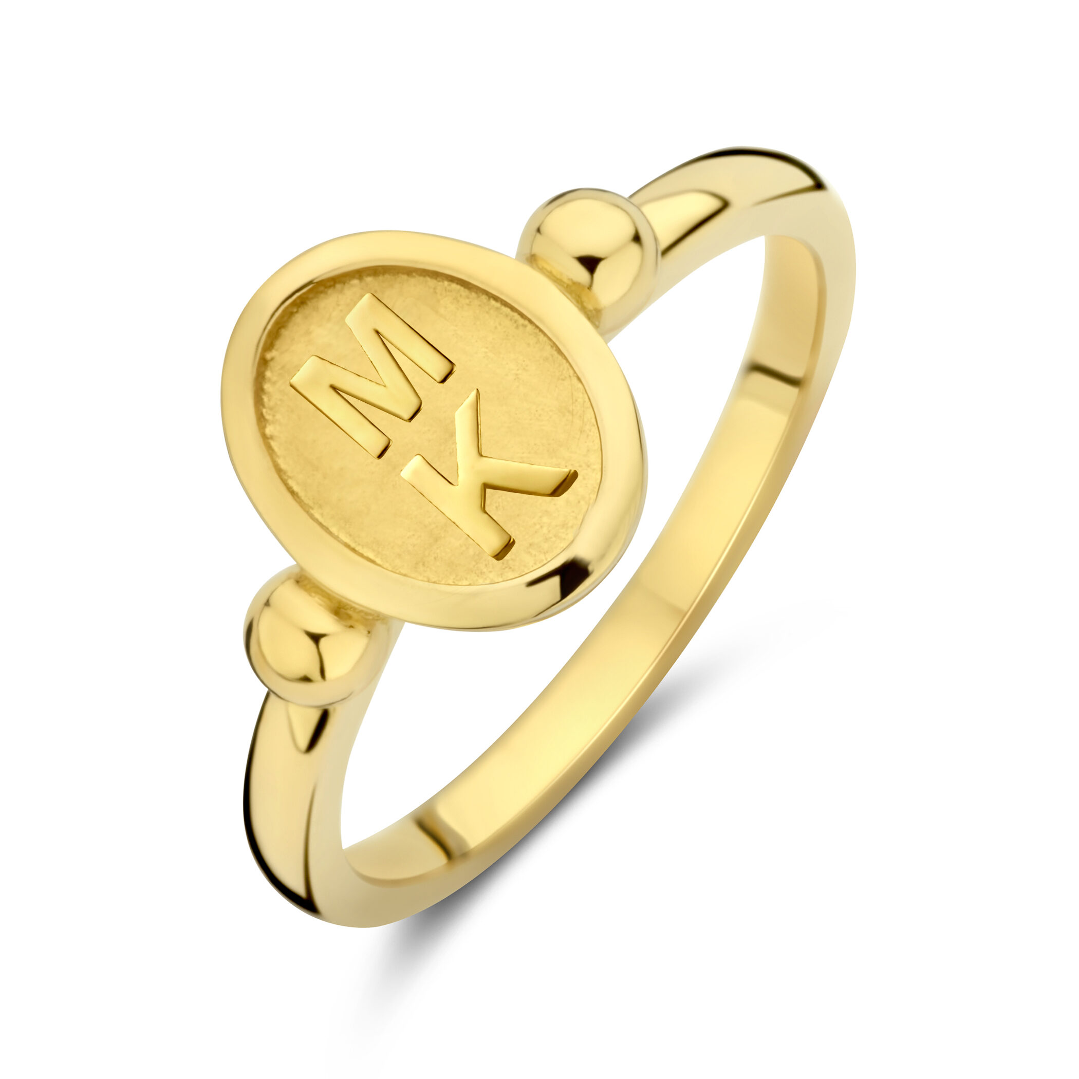 Ontwerp jouw unieke Minioro Ovalia ring, vervaardigd van 14-karaats goud, met twee initialen die belangrijk zijn voor jou of een geliefde. Of kies een symbolisch element dat een speciale betekenis toevoegt aan jouw sieraad.
