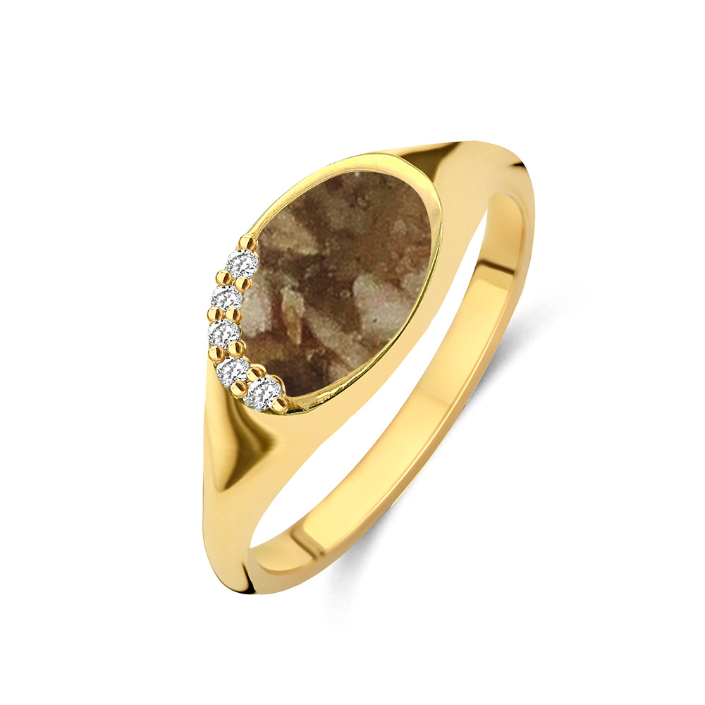 De Signet Memory Pavé Ring is een eigentijdse zegelring met een subtiele fonkeling van pavé gezette diamanten. In het zegel bevindt zich een askamer waarin as of moedermelk liefdevol kan worden verwerkt, een intiem detail dat dit sieraad een bijzondere betekenis geeft. De combinatie van het moderne design en de sprankelende diamanten zorgt voor een luxueuze maar ingetogen uitstraling.