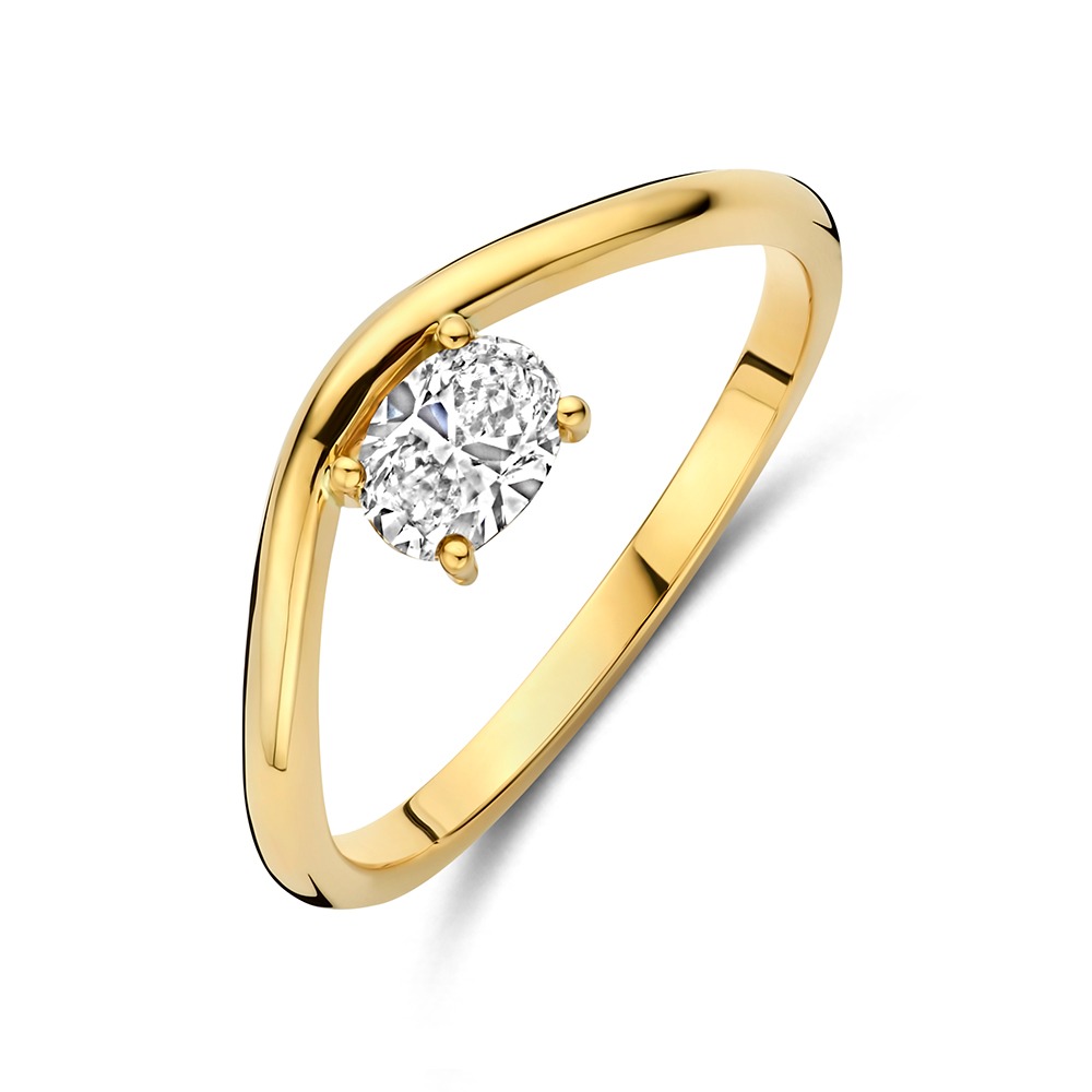 De Ring Vera is een verfijnde ring van 14 karaats goud met een modern en elegant ontwerp. In het middelpunt staat een ovale lab grown diamant van 0.25 karaat. Deze zorgt voor een subtiele en luxe schittering.
