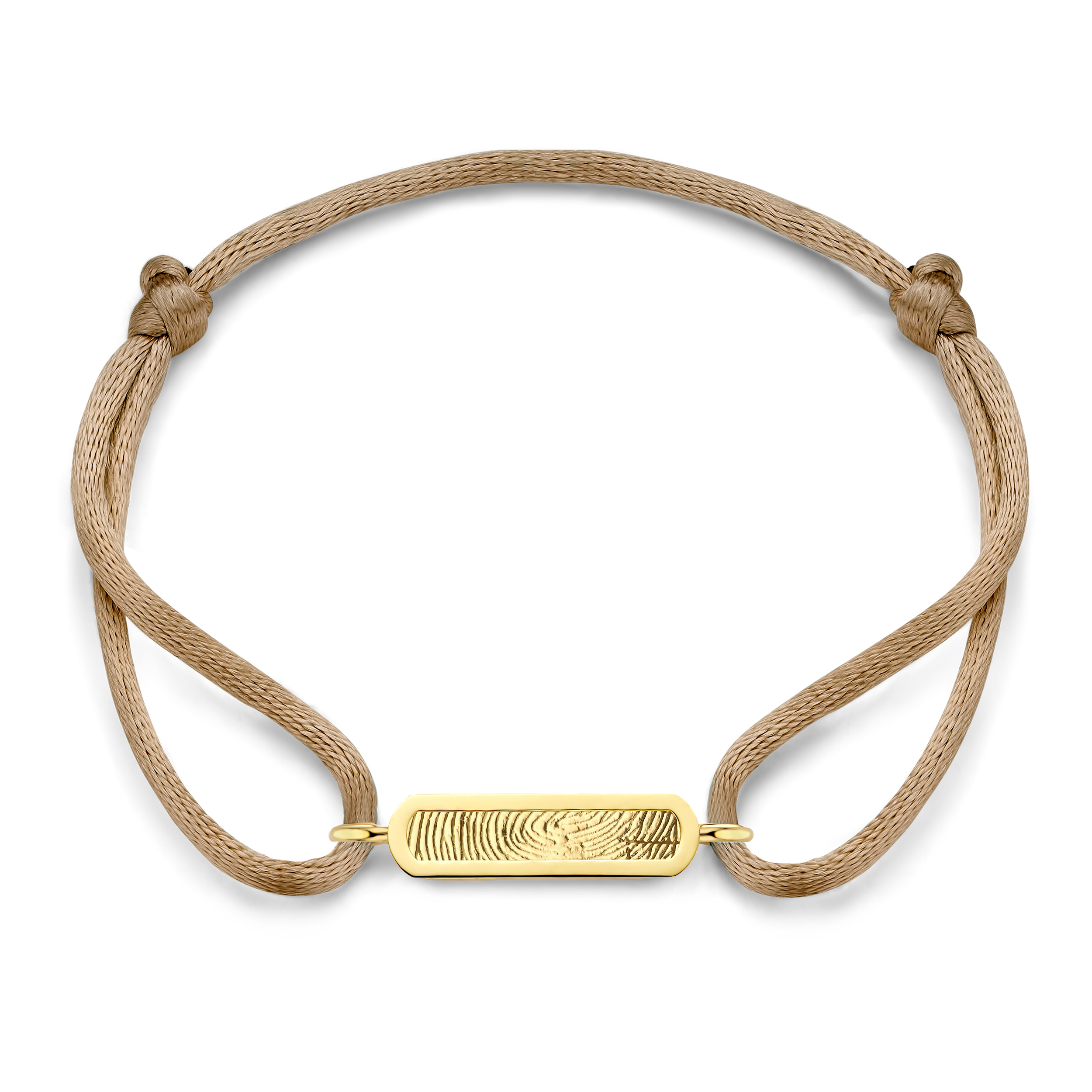 Ontwerp jouw Satin Bend Touch armband met een 14 karaats gouden bedel en een satijnen koord naar keuze. De ronde Bend bedel kan worden gepersonaliseerd met een persoonlijke 3D vingerafdruk, die met innovatieve 3D-techniek in reliƫf wordt verwerkt. Zo ontstaat een tastbaar en voelbaar sieraad met een warme, verfijnde uitstraling. De combinatie van het zachte satijn en de vloeiende vormen van de Bend bedel maakt dit sieraad tot een betekenisvol en stijlvol herinneringssieraad, ontworpen om je dierbare momenten altijd dichtbij te dragen.