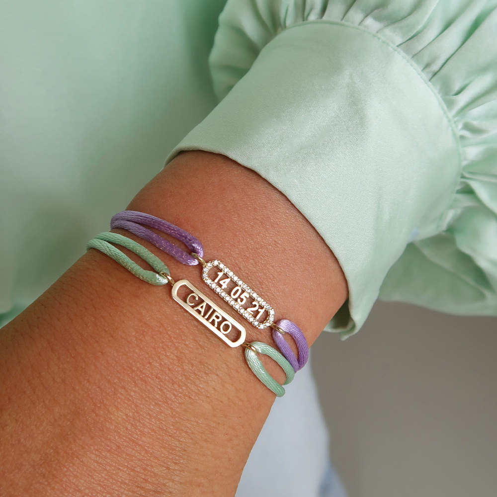 De Bend Satin Armband combineert de zachtheid van een luxe satijnen koord met een verfijnde ovale bedel van 14 karaats goud. Laat tot 12 tekens plaatsen, zoals initialen, een naam of een bijzondere datum, en draag zo jouw persoonlijke verhaal altijd bij je. Kies jouw favoriete kleur satijnkoord en creƫer jouw unieke armbandje.