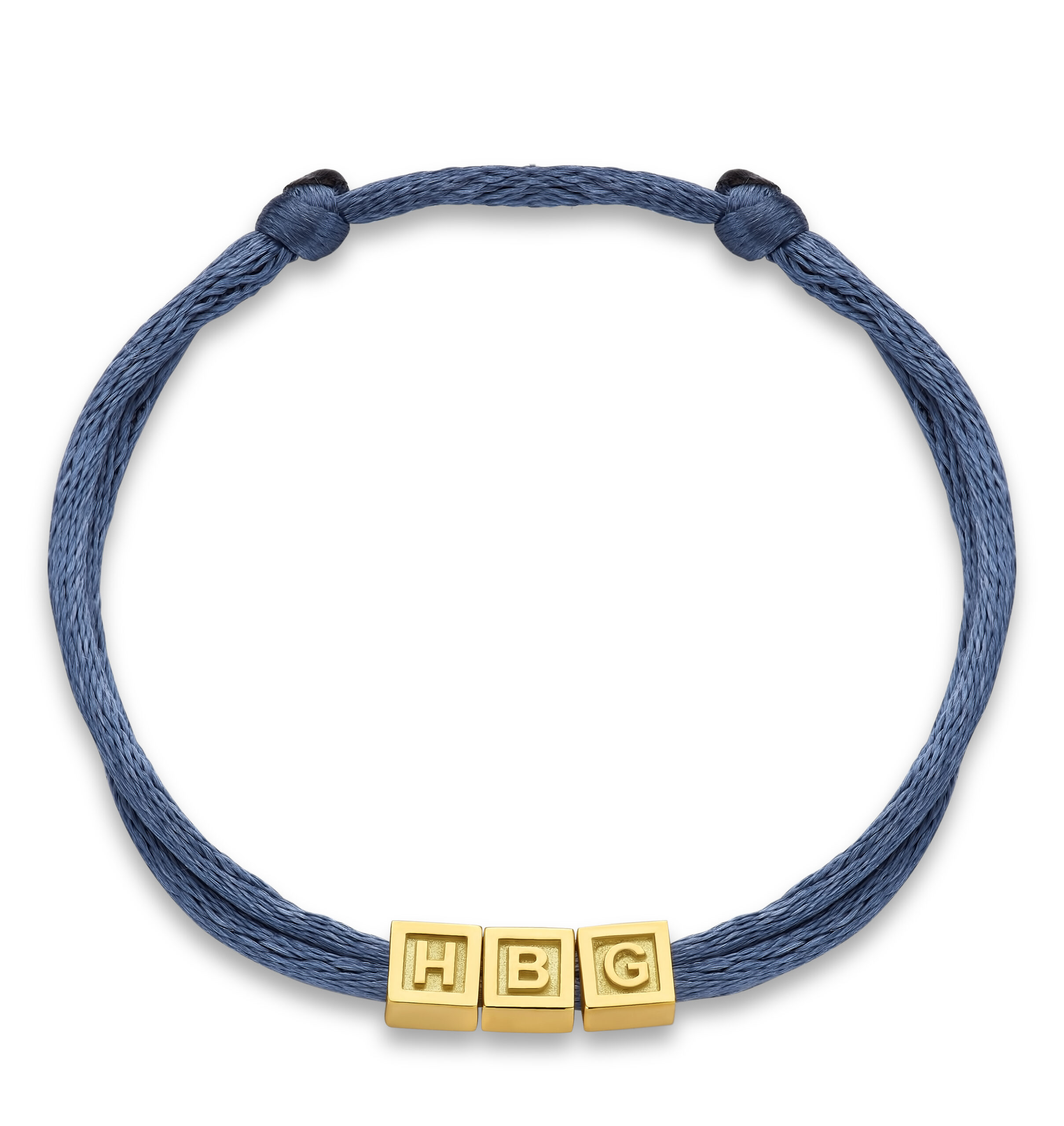 De Satin Charm Block armband combineert het stoere karakter van een gouden blok met het zachte gevoel van een satijnen koord.