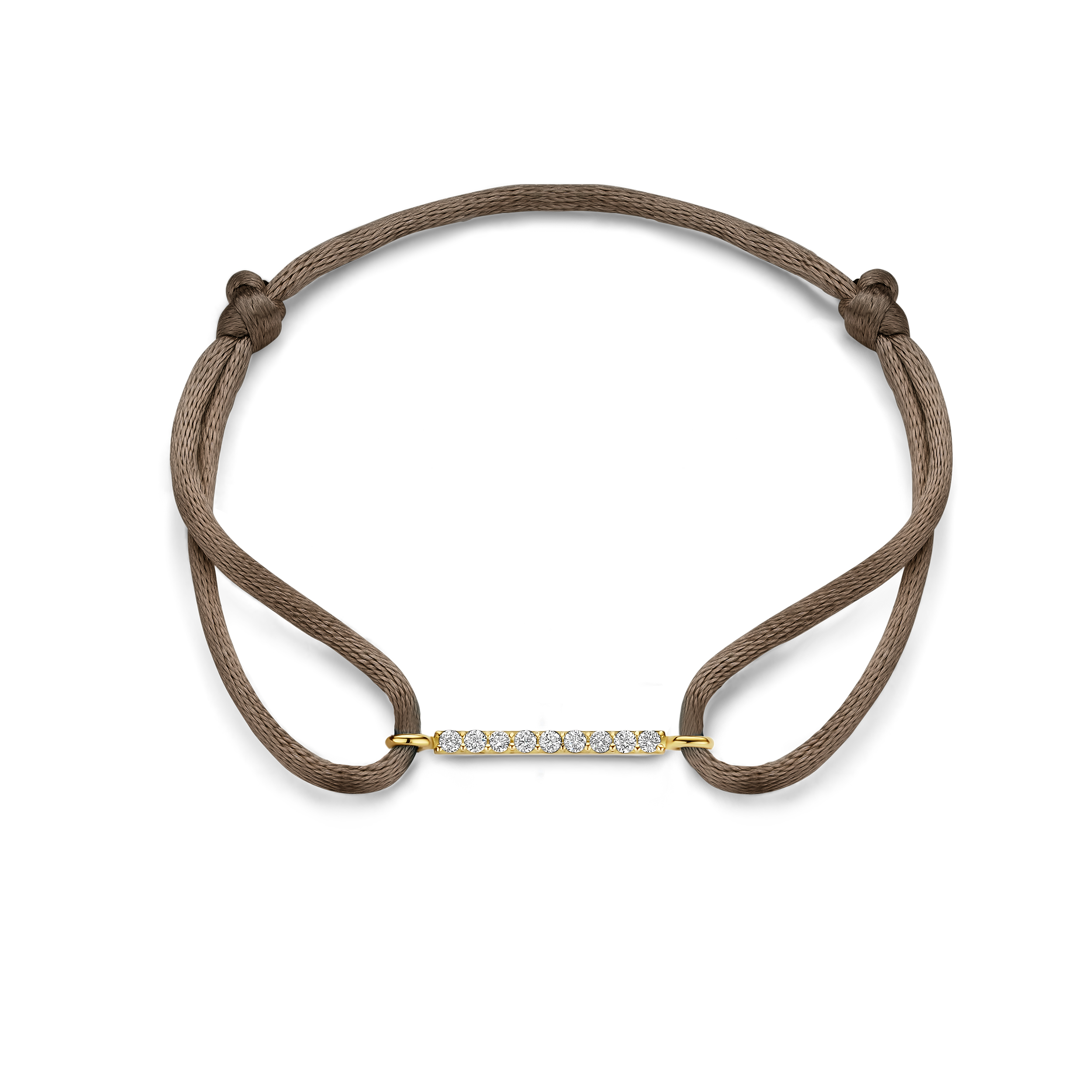 Het satijnen koord geeft een speels contrast met het goud en de diamantjes en dankzij de royale afmeting valt deze variant nét iets meer op.