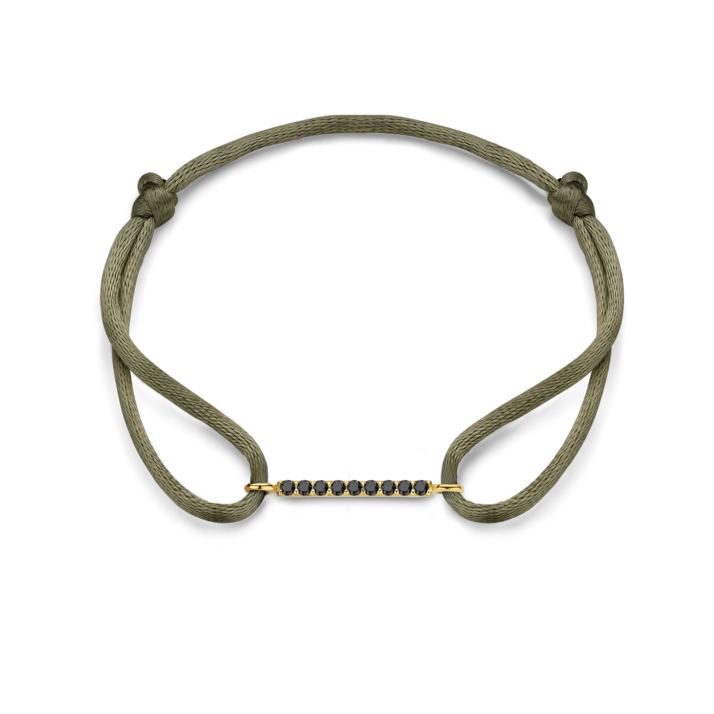 Deze Satin Diamondbar Big armband is de grotere variant van onze geliefde Satin Diamondbar – met een 14 karaats gouden staafje pavé gezet met negen iets grotere, zwarte diamanten voor extra sparkle!
