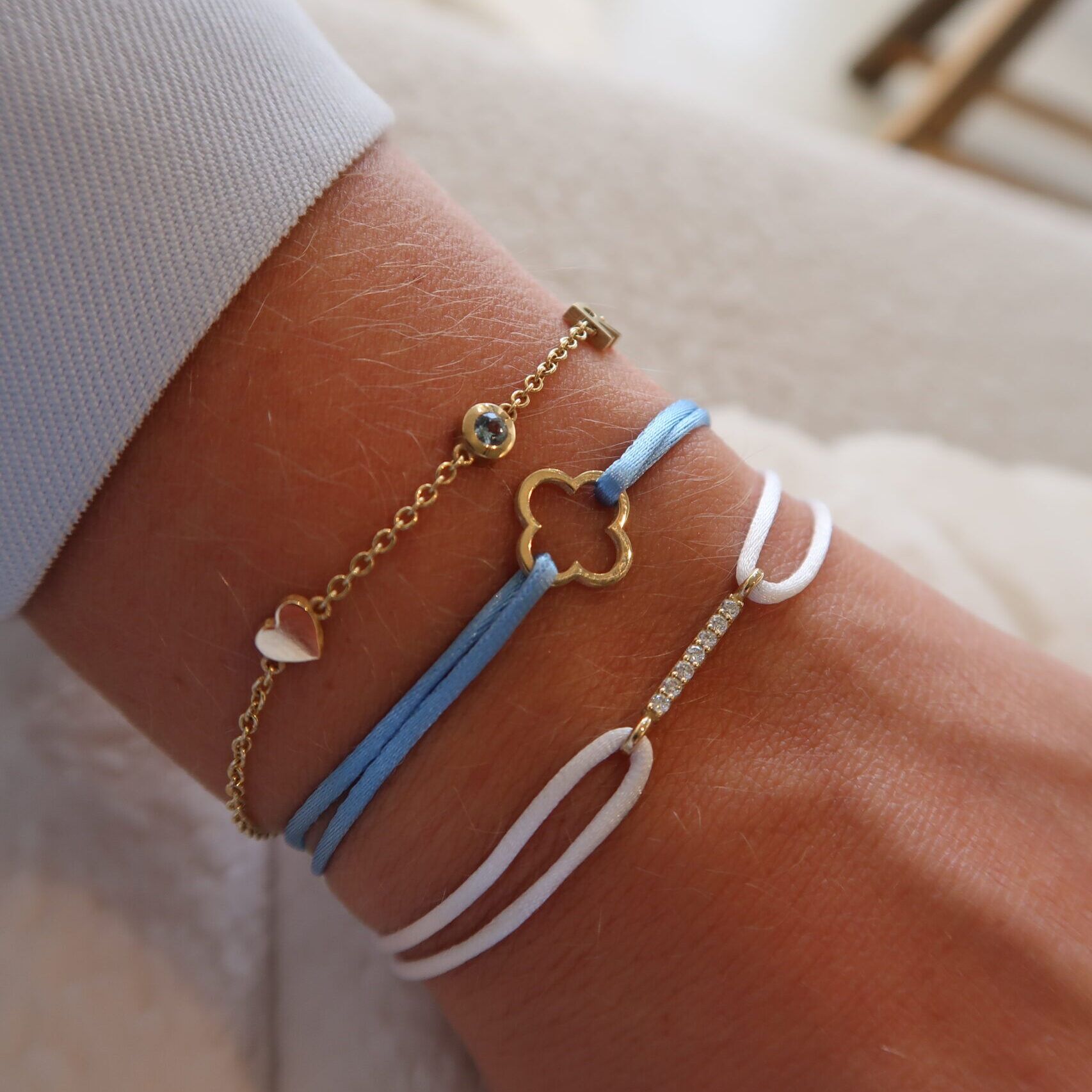 Met de mogelijkheid om je eigen satijnen koord te kiezen, kun je jouw eigen unieke Leaf armband samenstellen en een vleugje geluk en schoonheid toevoegen aan je look!