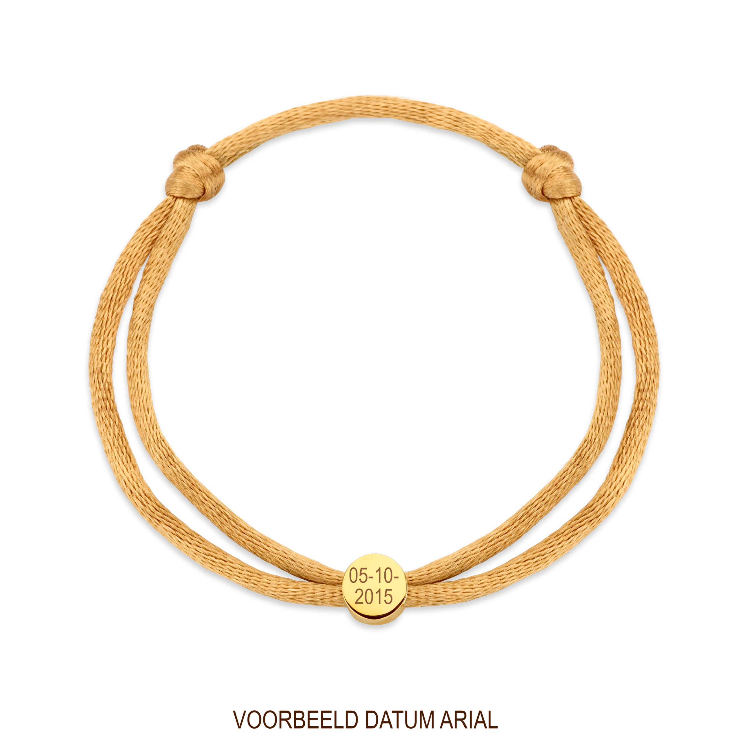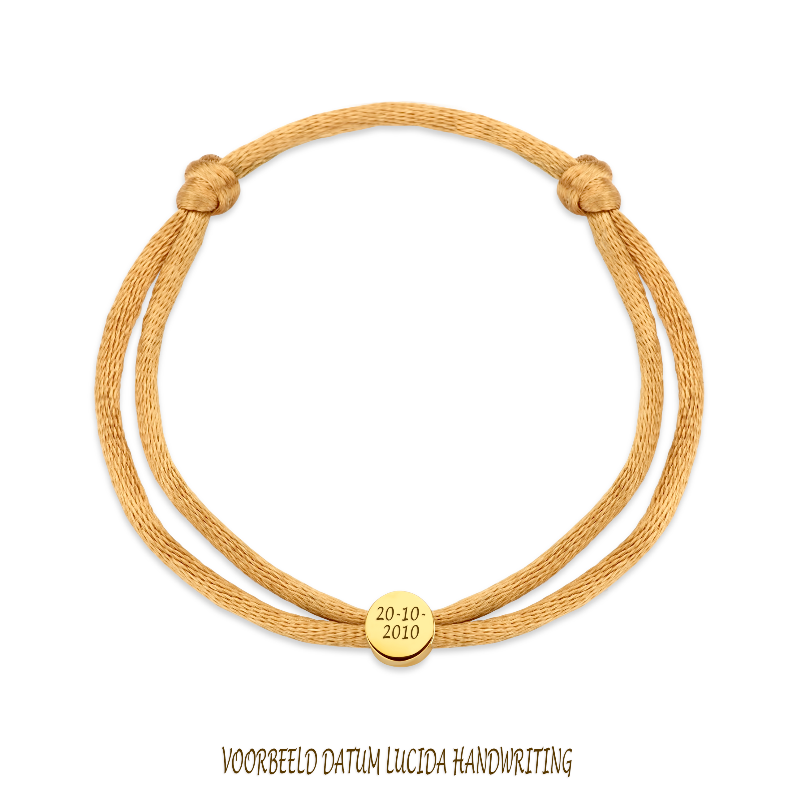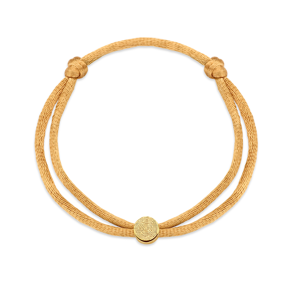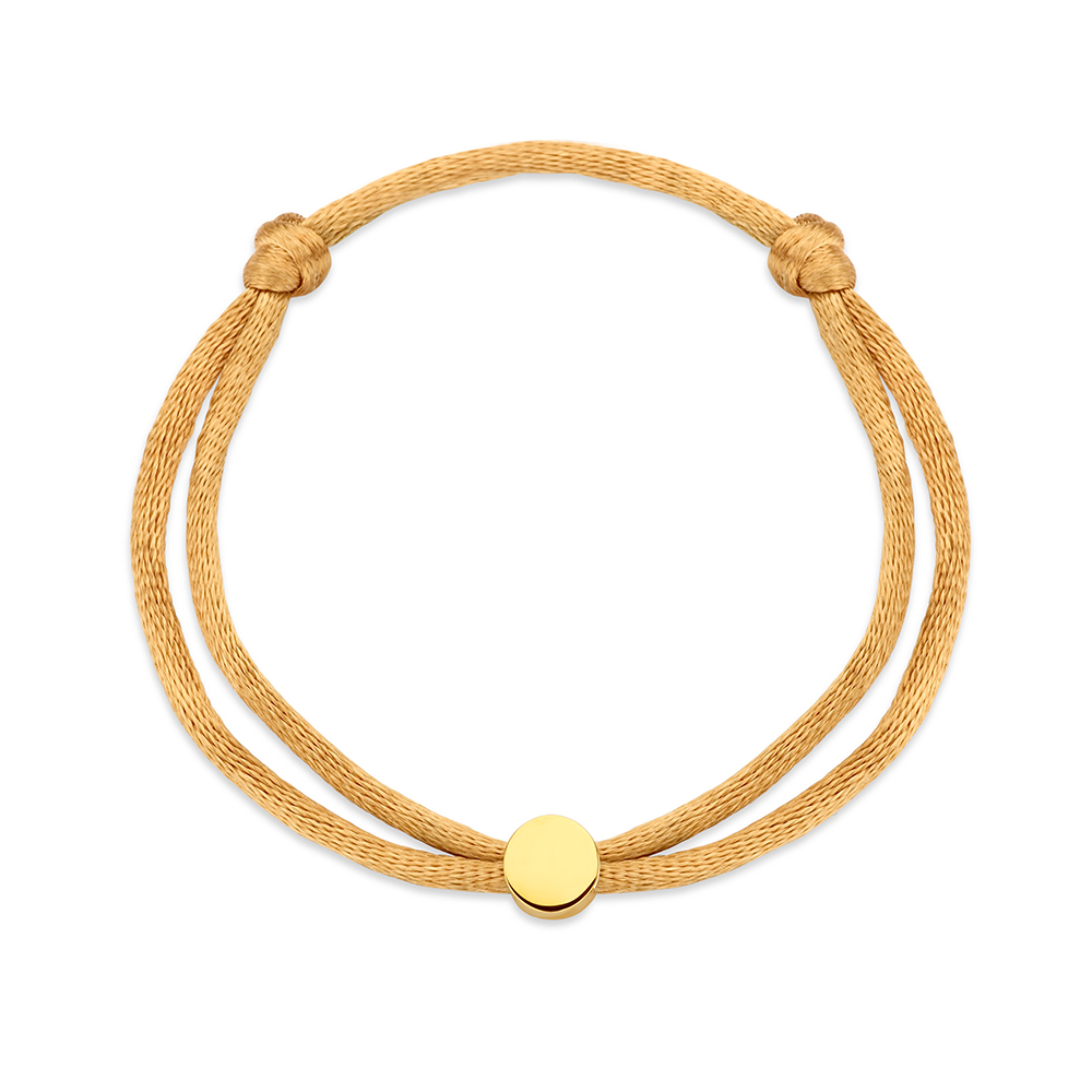 Ontdek onze Satin Graveerbedel, een tijdloos satijnen sieraad met een 14-karaats gouden bedel waarop je een persoonlijke tekst liefdevol kunt laten lasergraveren.