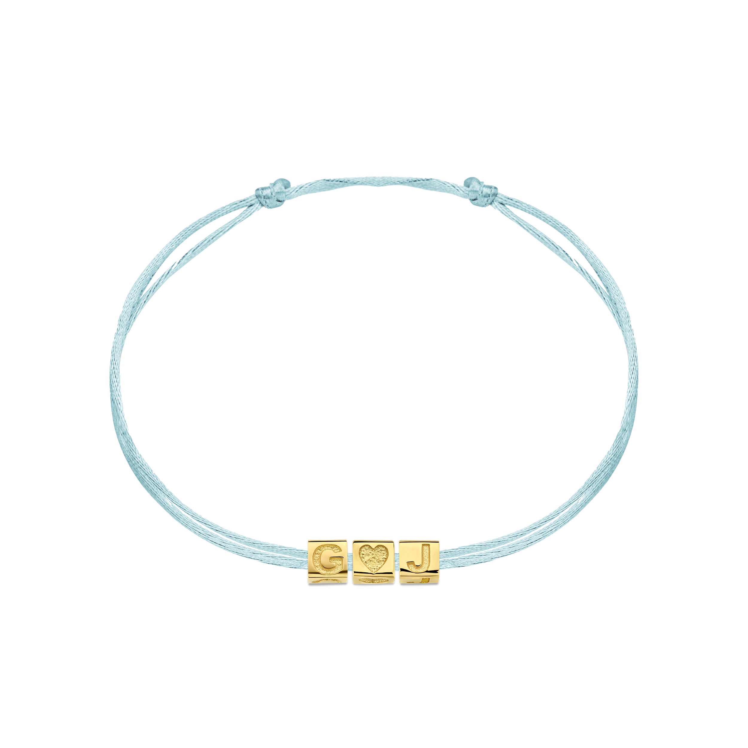 Ontwerp jouw Minioro Satin armband met drie kubusbedels, gemaakt van 14-karaats goud.
