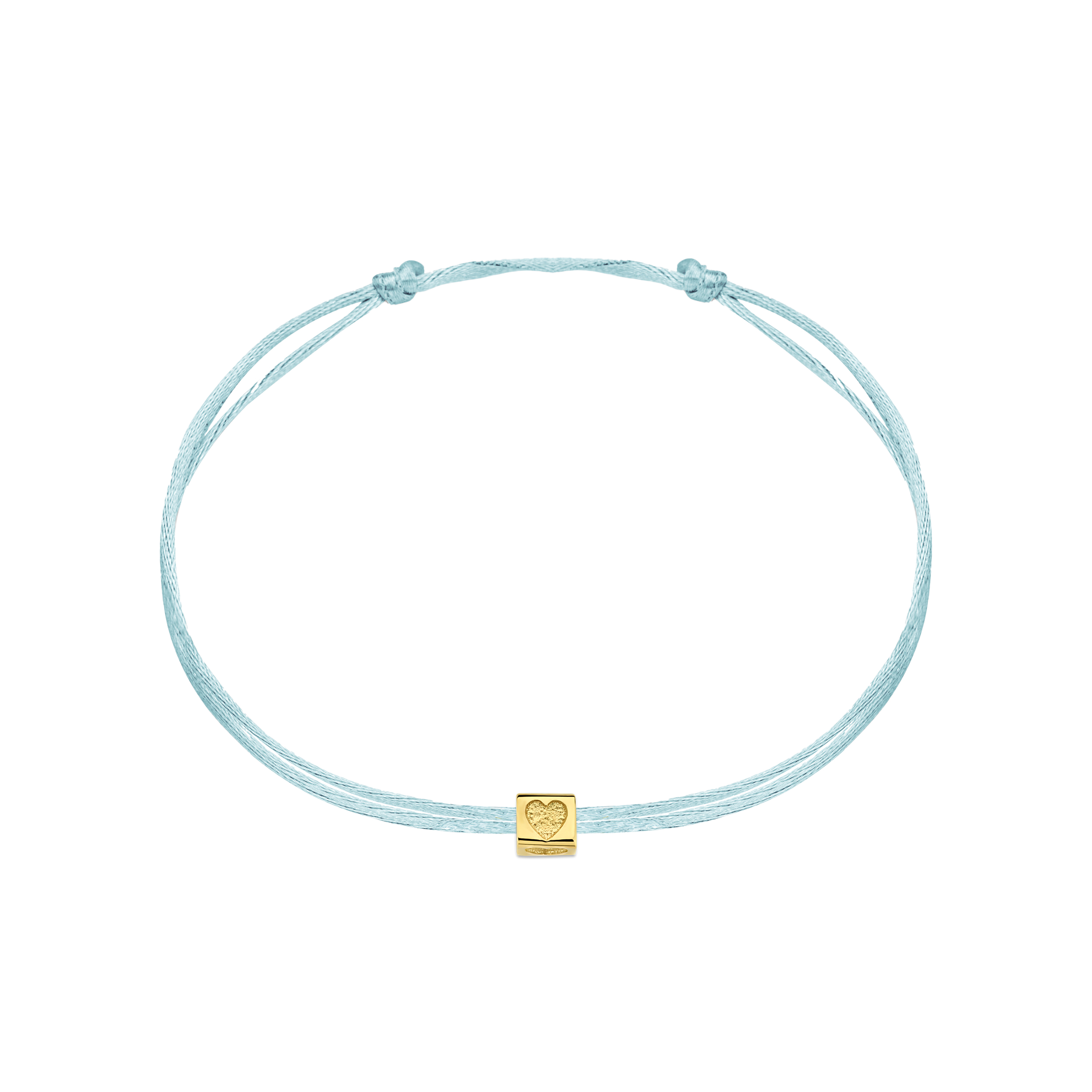 Ontwerp jouw Minioro Satin armband met een symbolische kubusbedel, gemaakt van 14-karaats goud.