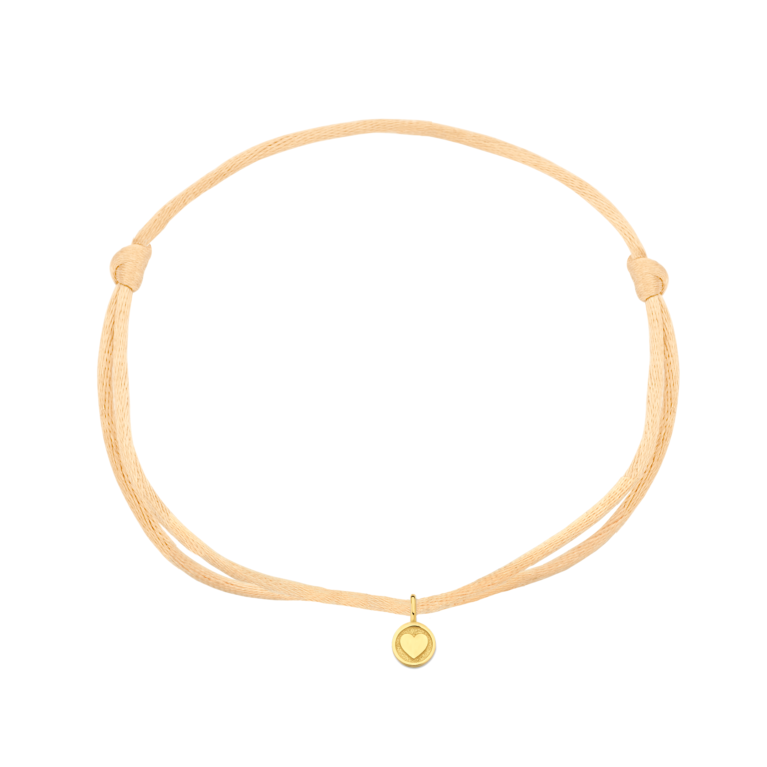 Ontwerp jouw Minioro Satin armband met een symbolische hangmunt, gemaakt van 14-karaats goud.
